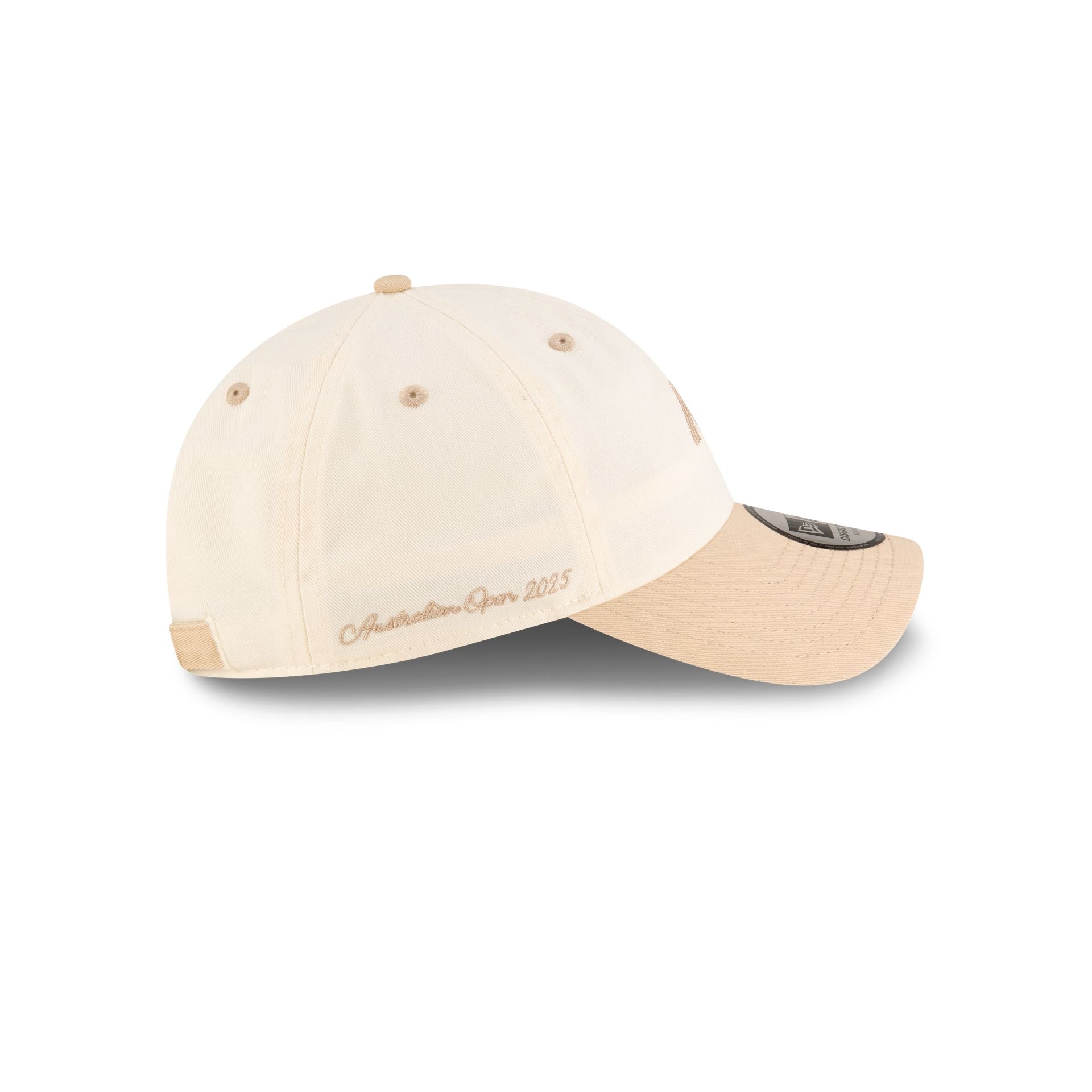 The 2025 Australian Open Cream Oat Casual Classic Adjustable Cap features an embroidered Australian Open logo at the front panels with a matching wordmark at the right-wear side. Additional details include an adjustable metal D-Ring closure at the rear.