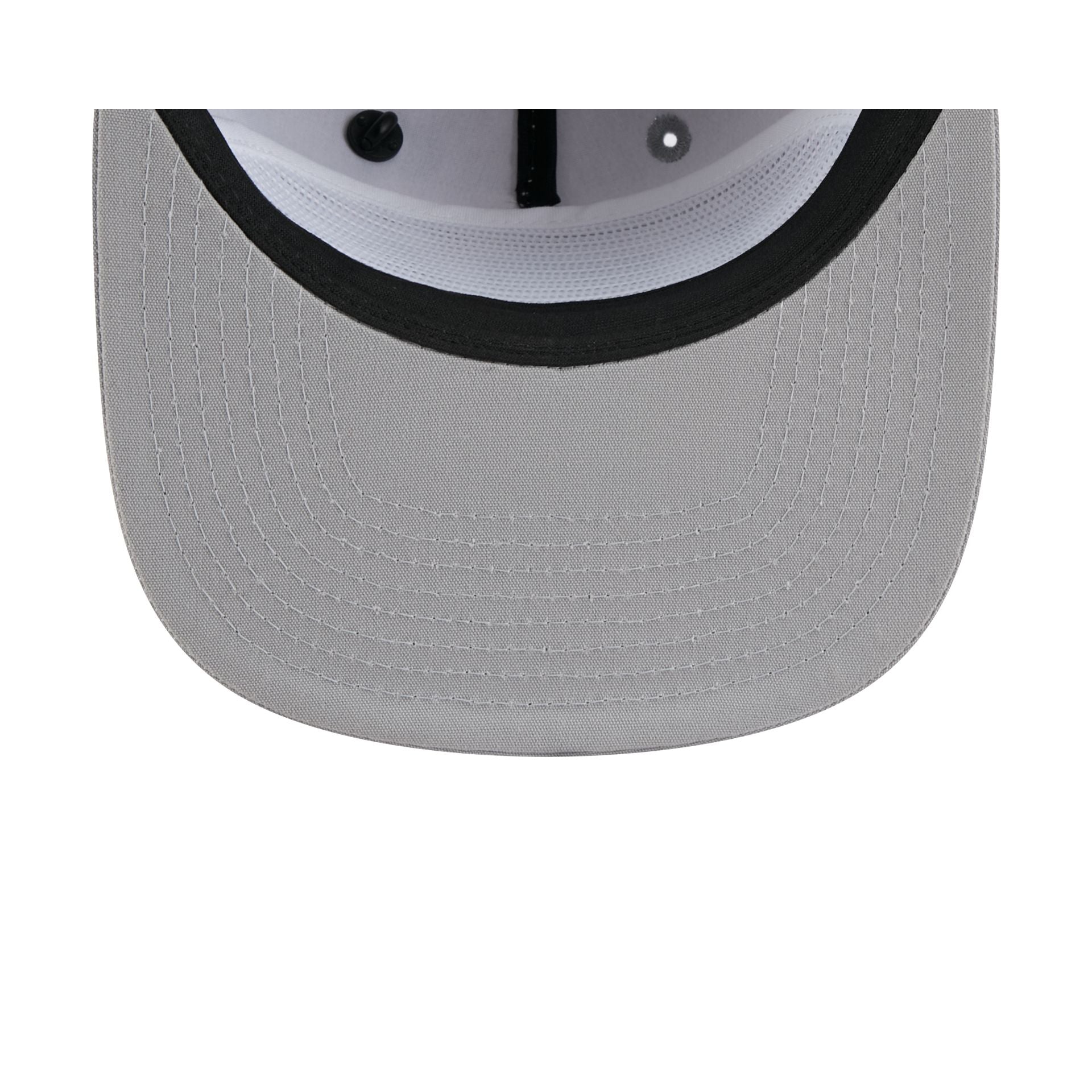 The 2025 Ryder Cup Team USA Gray Golfer features an embroidered Team USA logo at the front panels with a silicone Ryder Cup logo above an adjustable snapback closure at the rear. Additional details include a U.S.A. pin at the front left panel. a rope at the visor. and a gray undervisor.