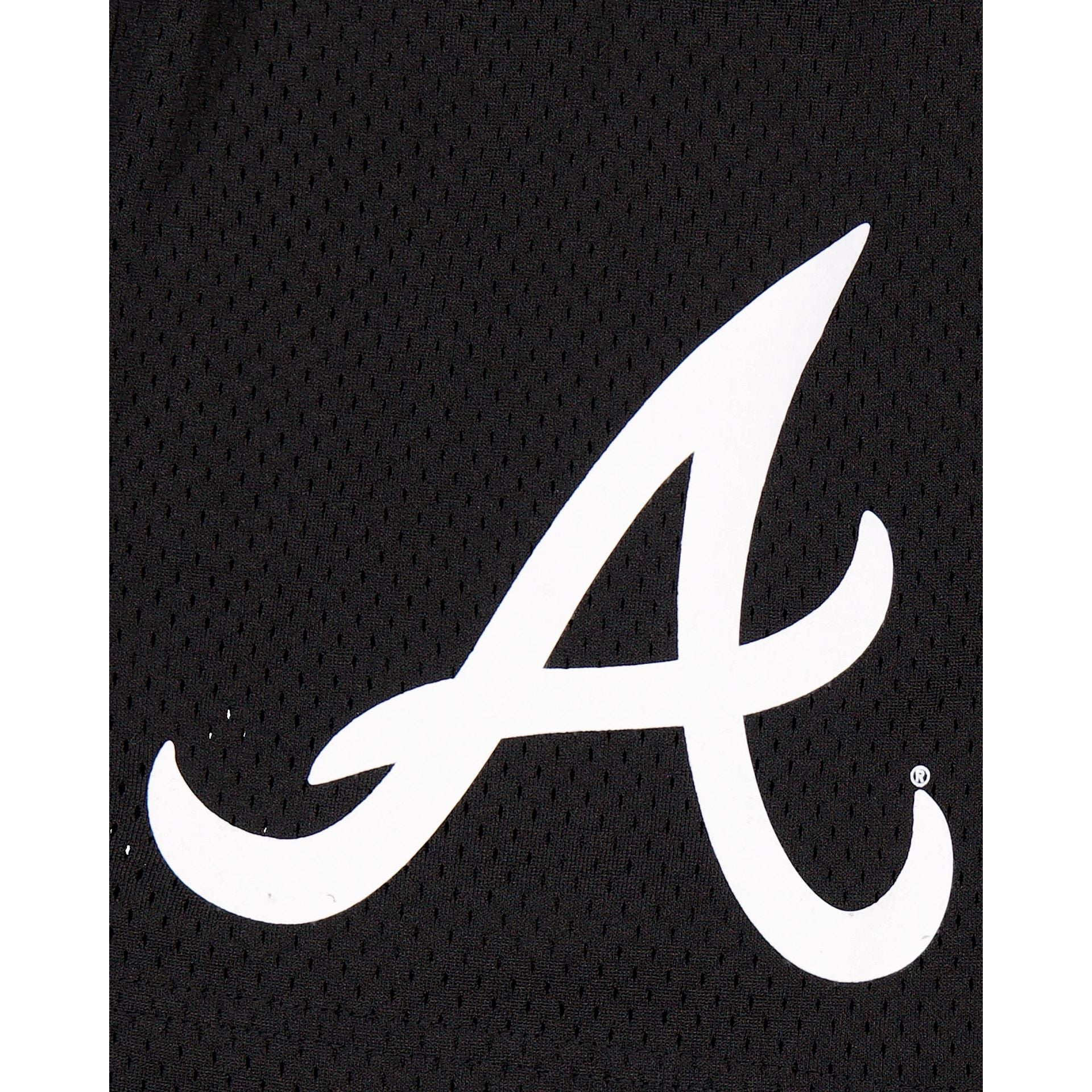 The Atlanta Braves Mesh Shorts features a screen-printed Braves logo at the left leg with a team wordmark at the right leg.