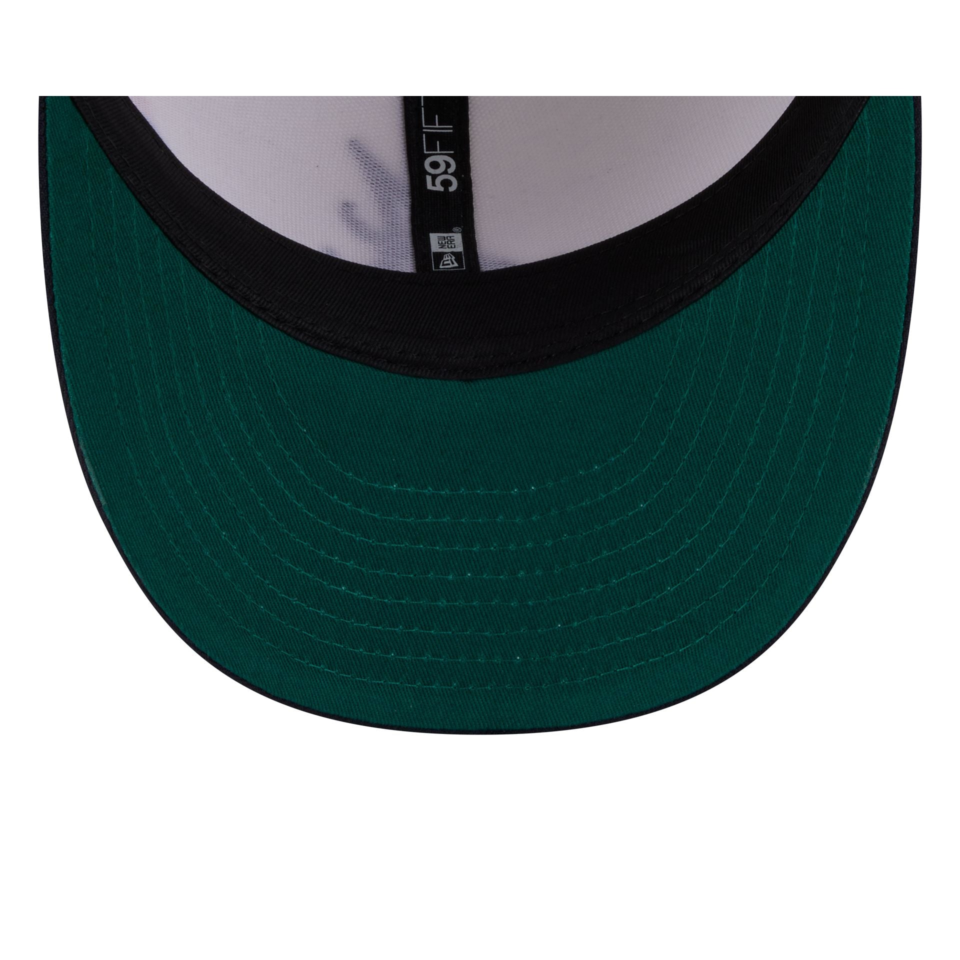 The Atlanta Braves Tonal Florals White Pre-Curved 59FIFTY Fitted Cap features an embroidered Braves logo at the front panels with a team color visor and a green undervisor. Additional details include chainstitched embroidered flowers with handstitched beading at the left-wear side and a matching MLB Batterman logo at the rear.