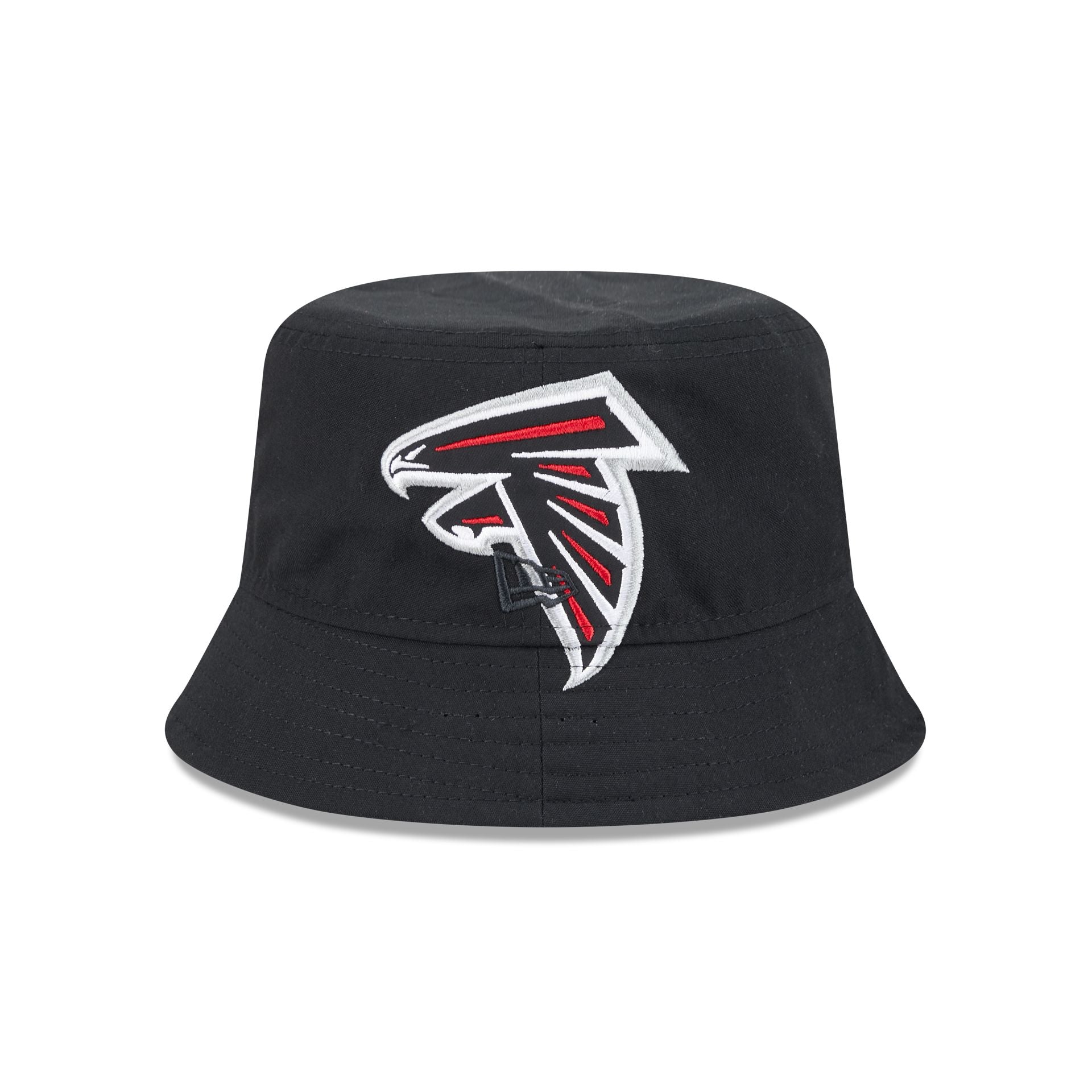 The Atlanta Falcons Kids Helmet Bucket Hat features an embroidered team helmet design throughout the hat with a team tag at the rear.
