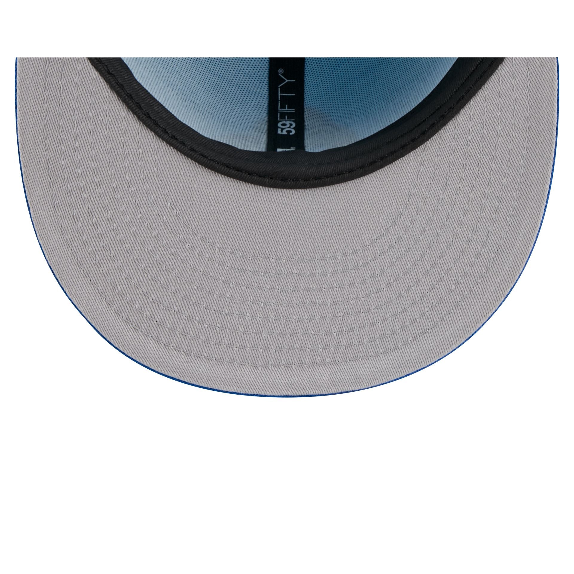 The Baltimore Orioles Independence Day 2025 59FIFTY Fitted Cap features an embroidered American flag themed Orioles logo at the front panels with a matching MLB Batterman logo at the rear. a blue visor. and a gray undervisor.