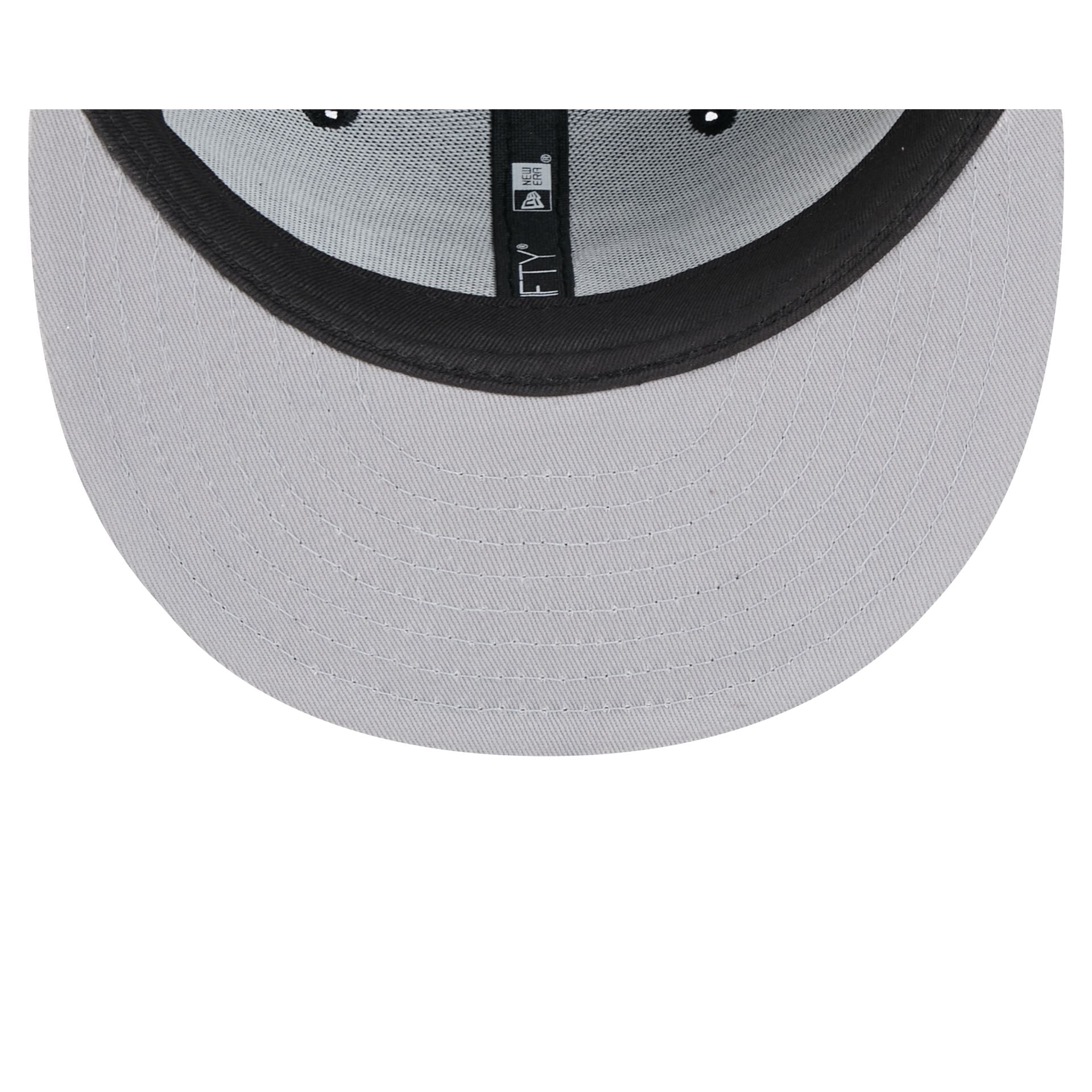 The Baltimore Ravens Kids 9FIFTY Snapback Hat features an embroidered Ravens wordmark at the front panels with a matching team logo at the right-wear side. Additional details include a gray undervisor and a snapback closure at the rear.