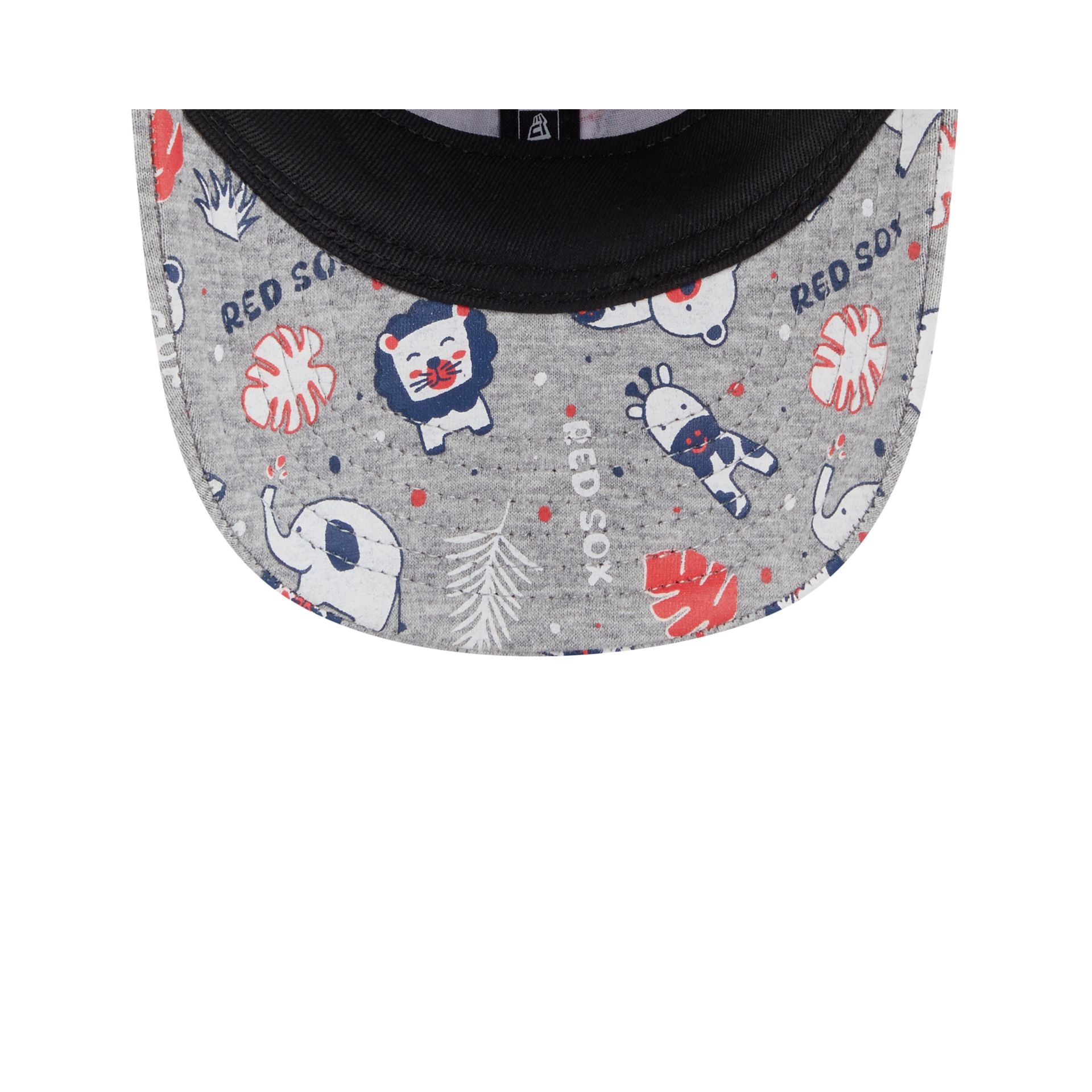 The Boston Red Sox Kids Animal 9TWENTY Adjustable Cap features an embroidered Red Sox logo at the front panels with screen-printed animals throughout and a soft stretch cord at the rear.