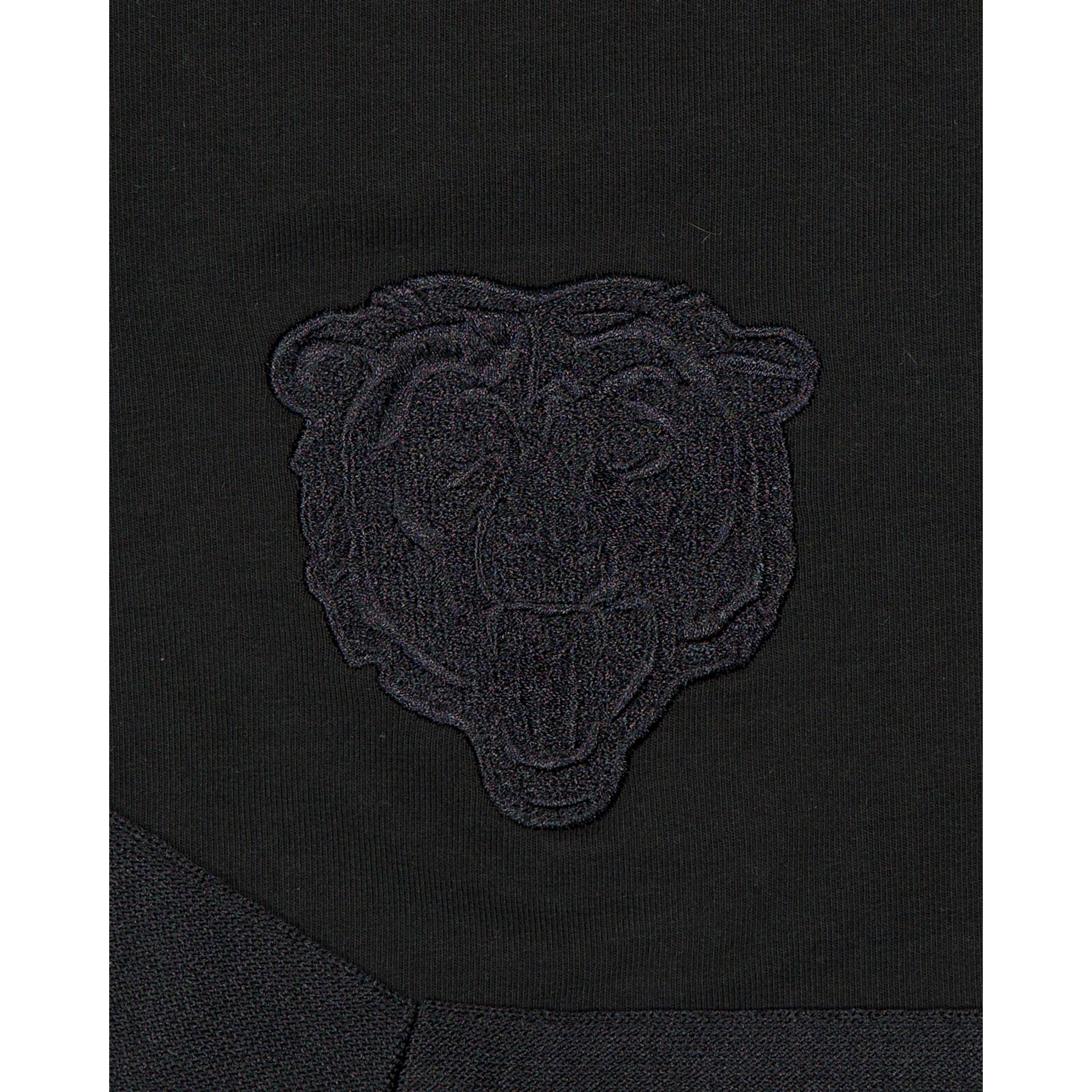 The Chicago Bears Black on Black Logo Select Shorts features an embroidered Bears logo at the right-wear leg and a satin applique with a tonal stitch team wordmark at the rear left leg.
