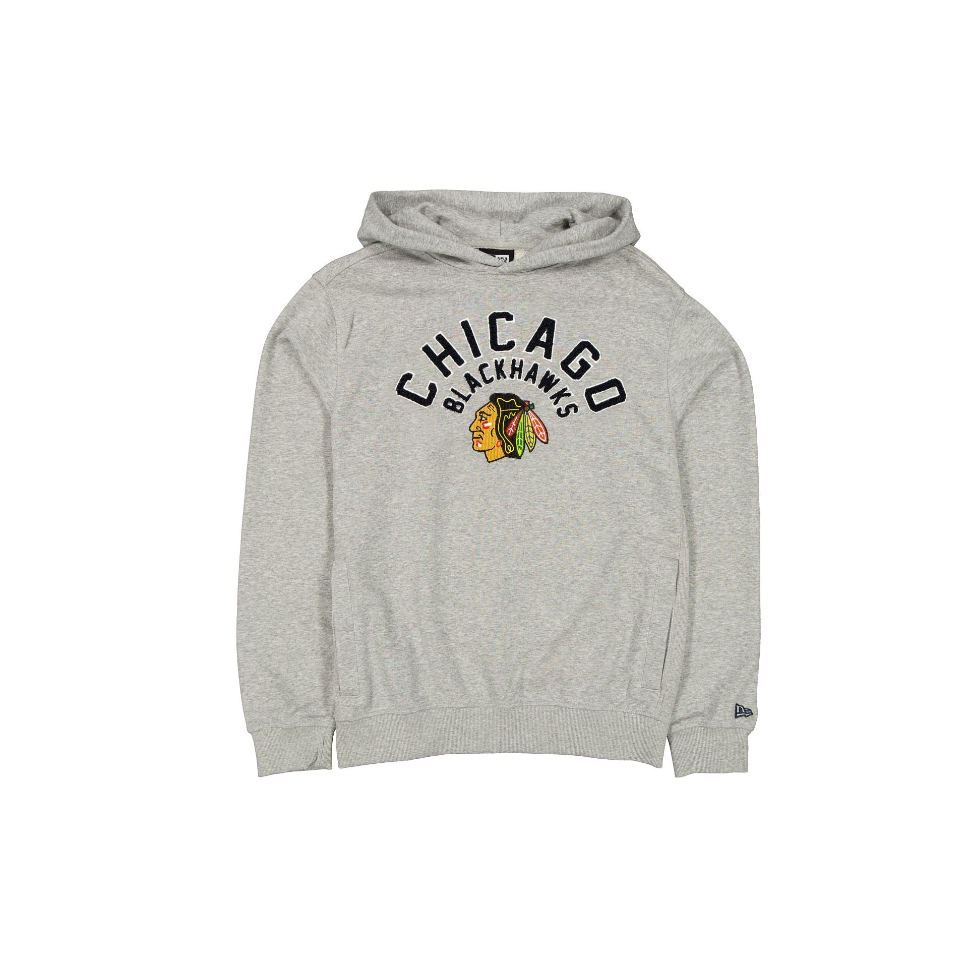 The Chicago Blackhawks Sport Night Heather Gray Hoodie features an embroidered chenille Blackhawks logo and wordmark at the front.