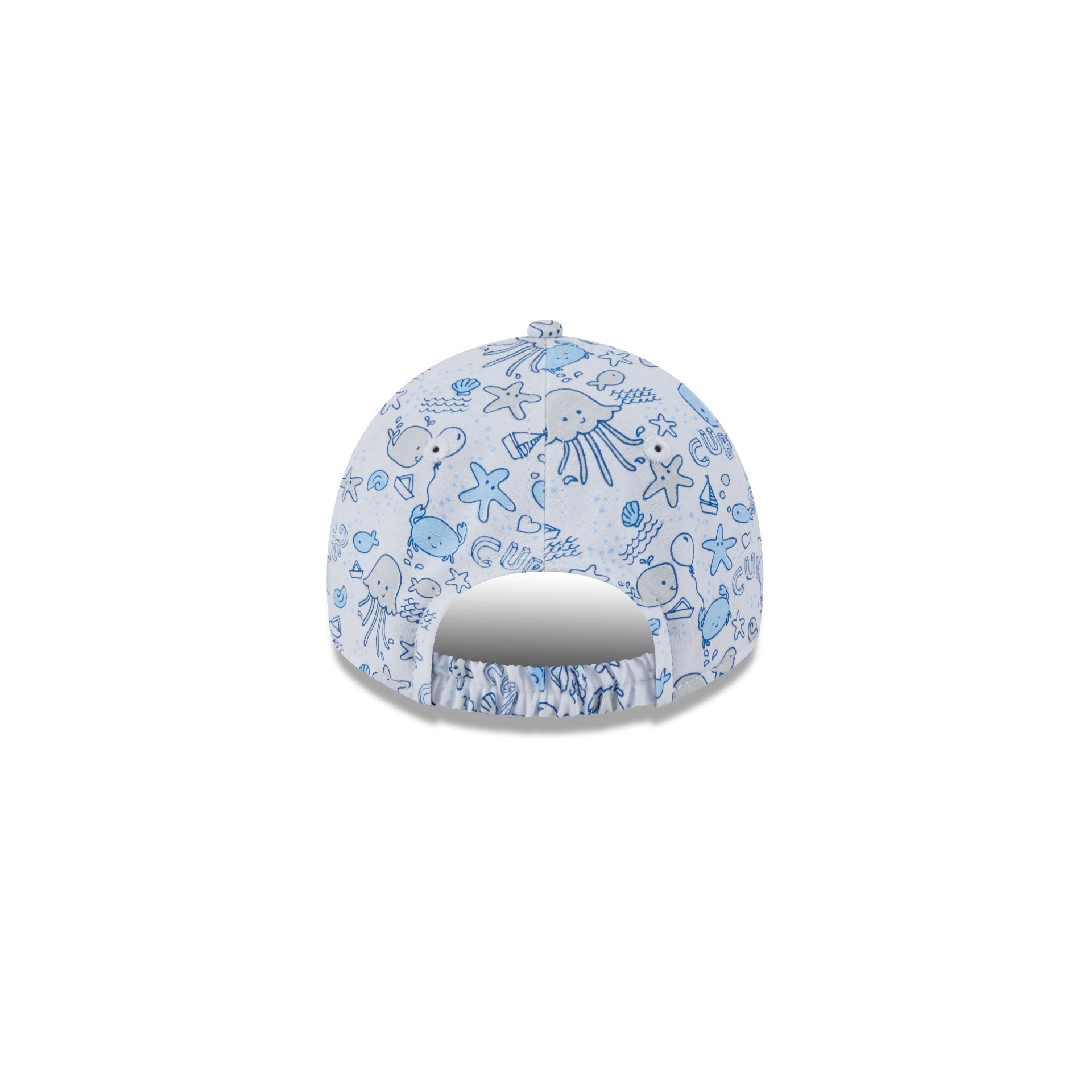 The Chicago Cubs Kids Ocean 9TWENTY Adjustable Cap features an embroidered Cubs logo at the front panels with a nautical design throughout the cap. Additional details include a stretch strap closure at the rear and a gray undervisor.