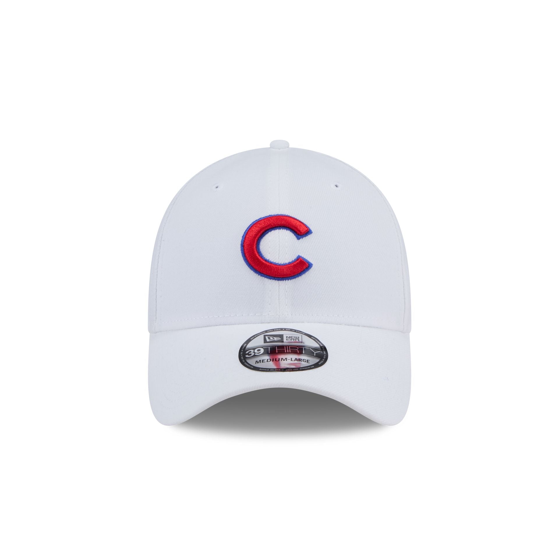 The Chicago Cubs Optic White 39THIRTY Stretch Fit Hat features an embroidered Cubs logo at the front panels with a matching team wordmark at the rear and a white undervisor.