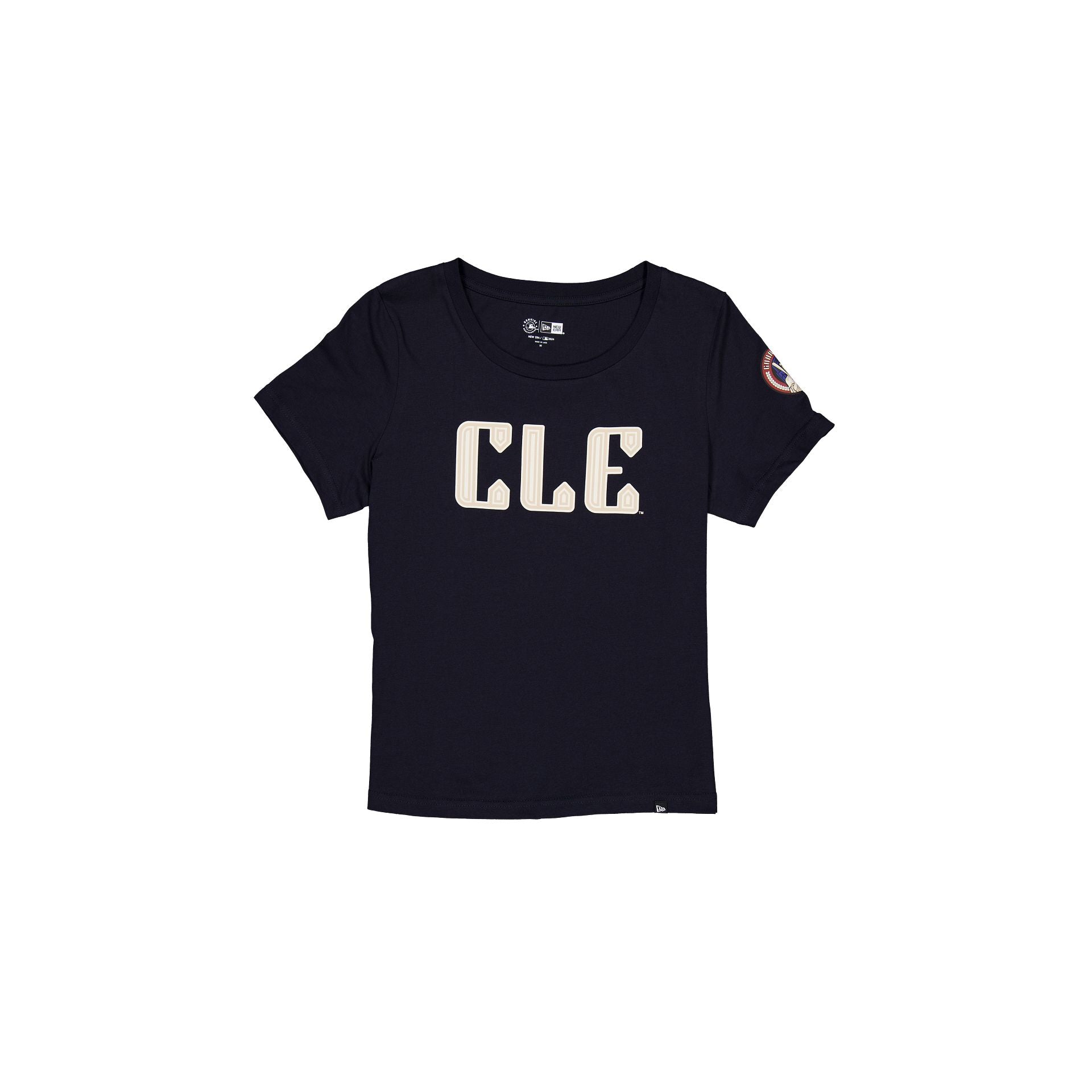 The Cleveland Guardians City Connect Women’s T-Shirt features a screen-printed Guardians wordmark at the front with a team logo at the left sleeve.