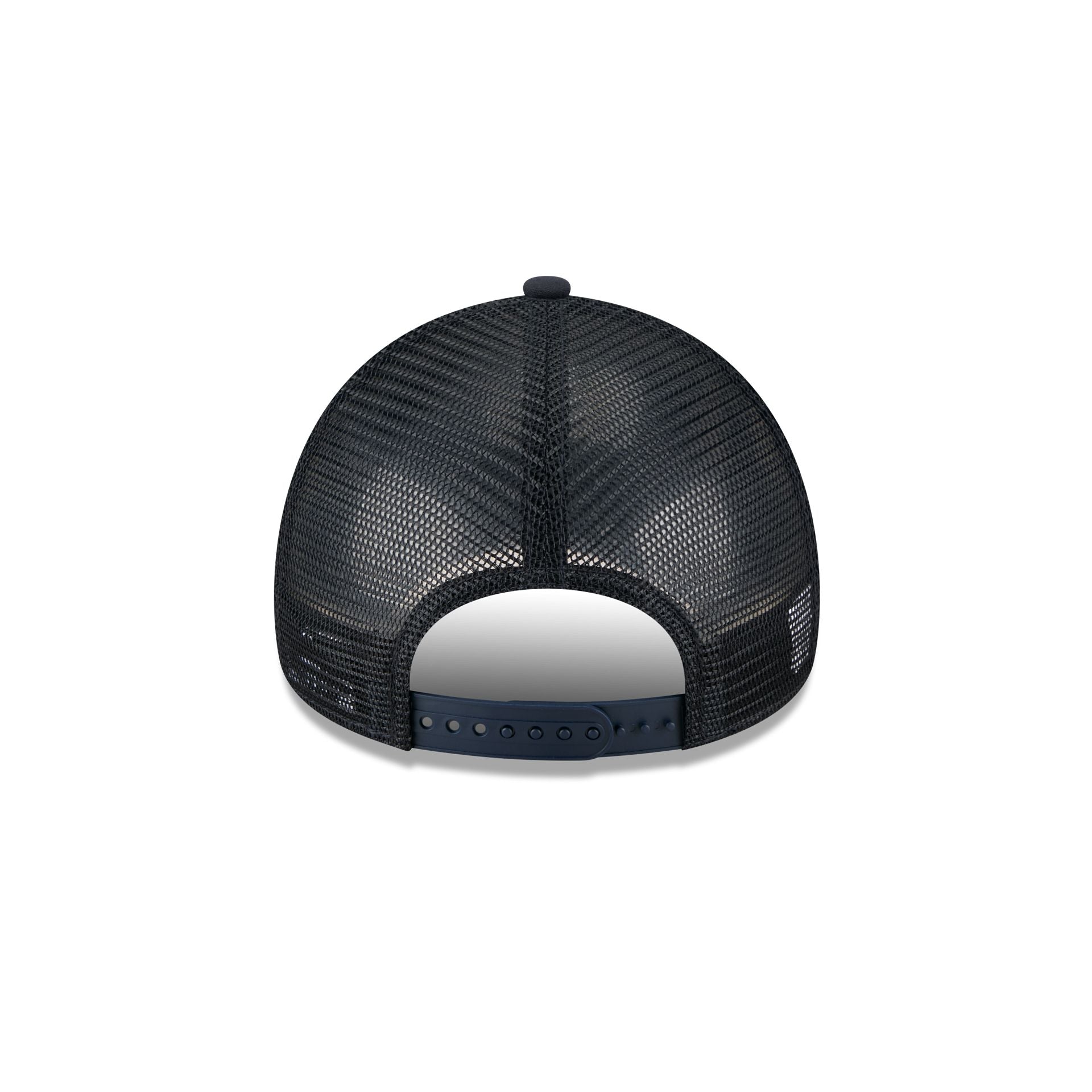 The Connecticut Huskies Go-To 9FORTY A-Frame Trucker features an embroidered Huskies logo at the front panels with a snapback closure at a mesh rear.