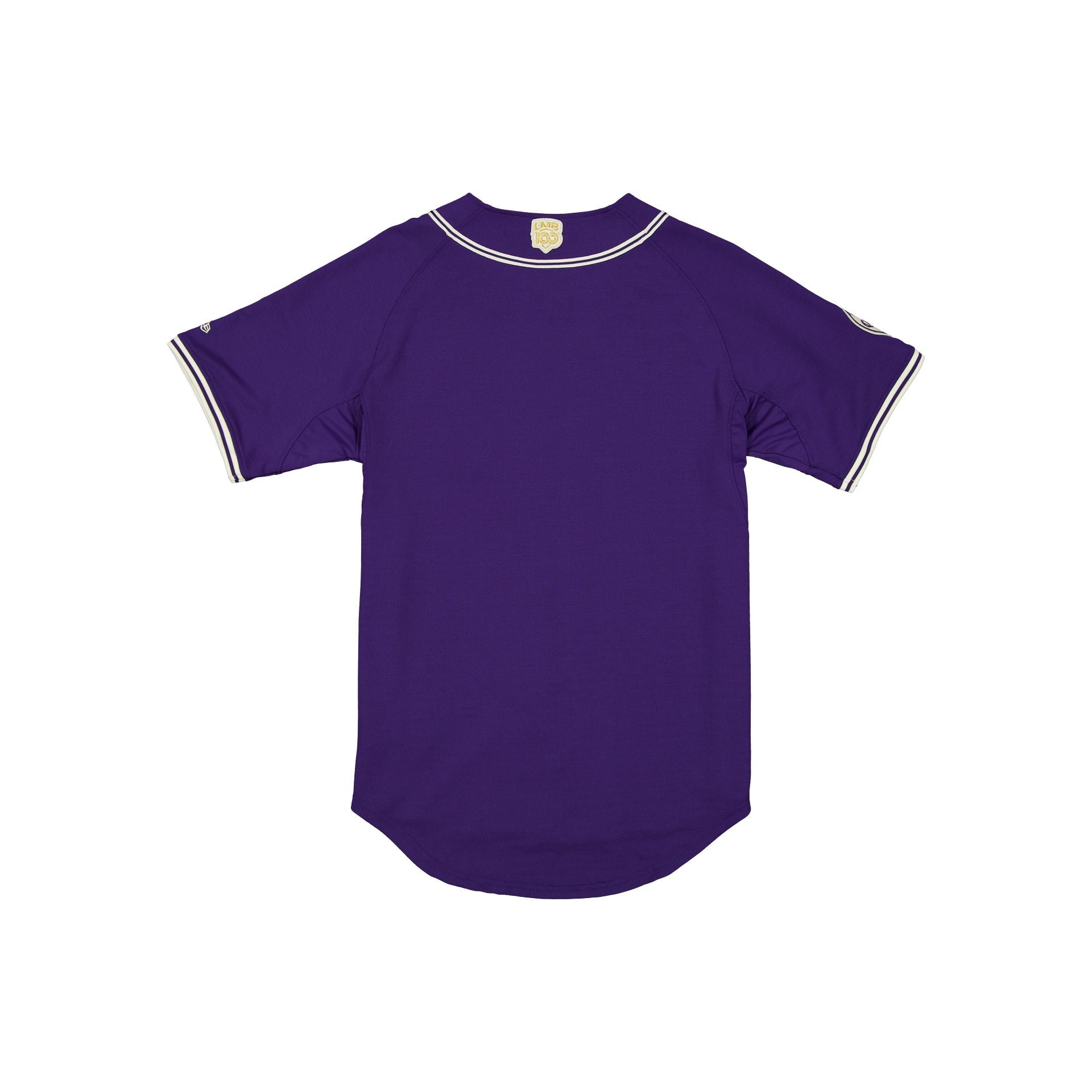 The Conspiradores de Querétaro Retro Jersey features an embroidered Conspiradores applique logo at the chest with a New Era Official Merchandise patch at the front. a team patch at the right-wear sleeve. and a LMB logo at the rear.