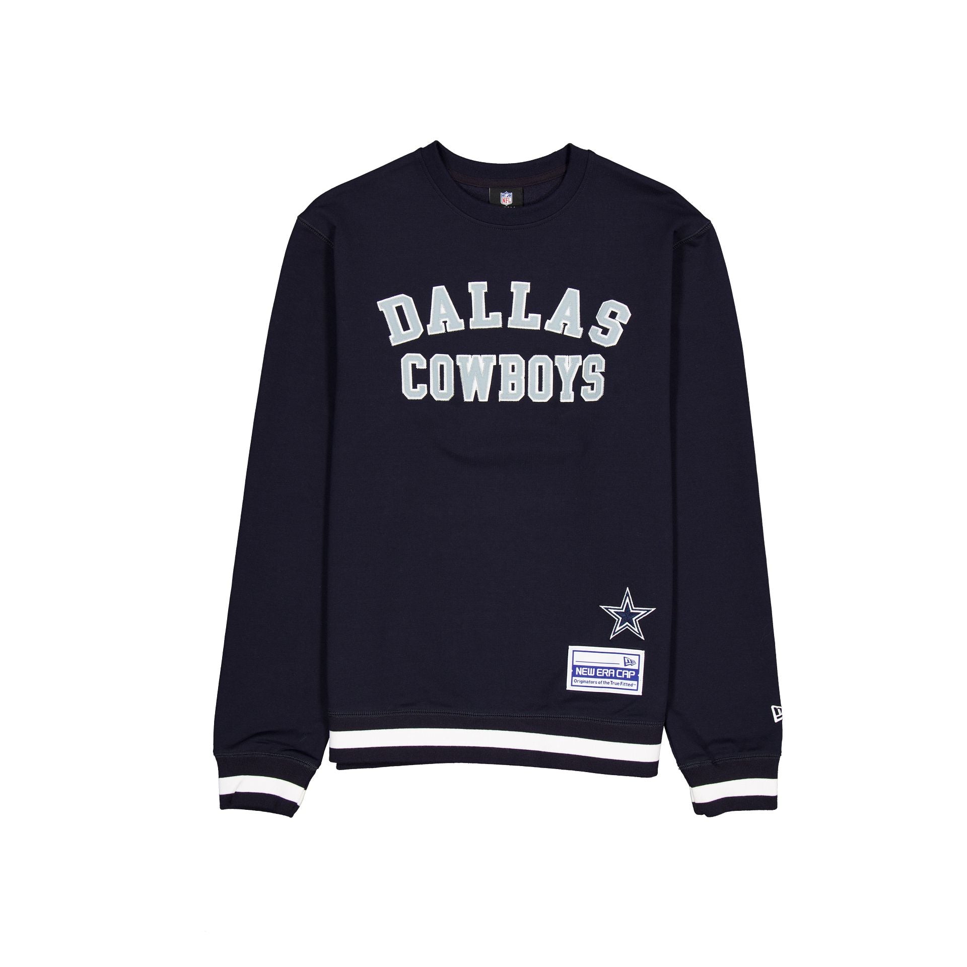 The Dallas Cowboys Team Color Logo Select Crewneck features a zig zag stitched twill applique Cowboys wordmark at the chest with an embroidered team logo above a New Era Cap jock tag at the left hip.