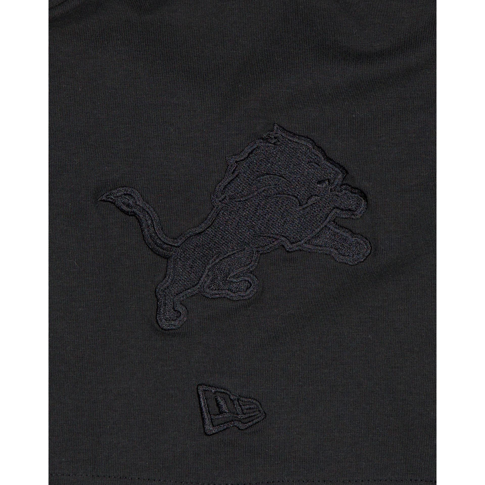 The Detroit Lions Black on Black Logo Select T-Shirt features a satin applique with a tonal stitch Lions wordmark at the chest and an embroidered team logo at the left-wear sleeve.