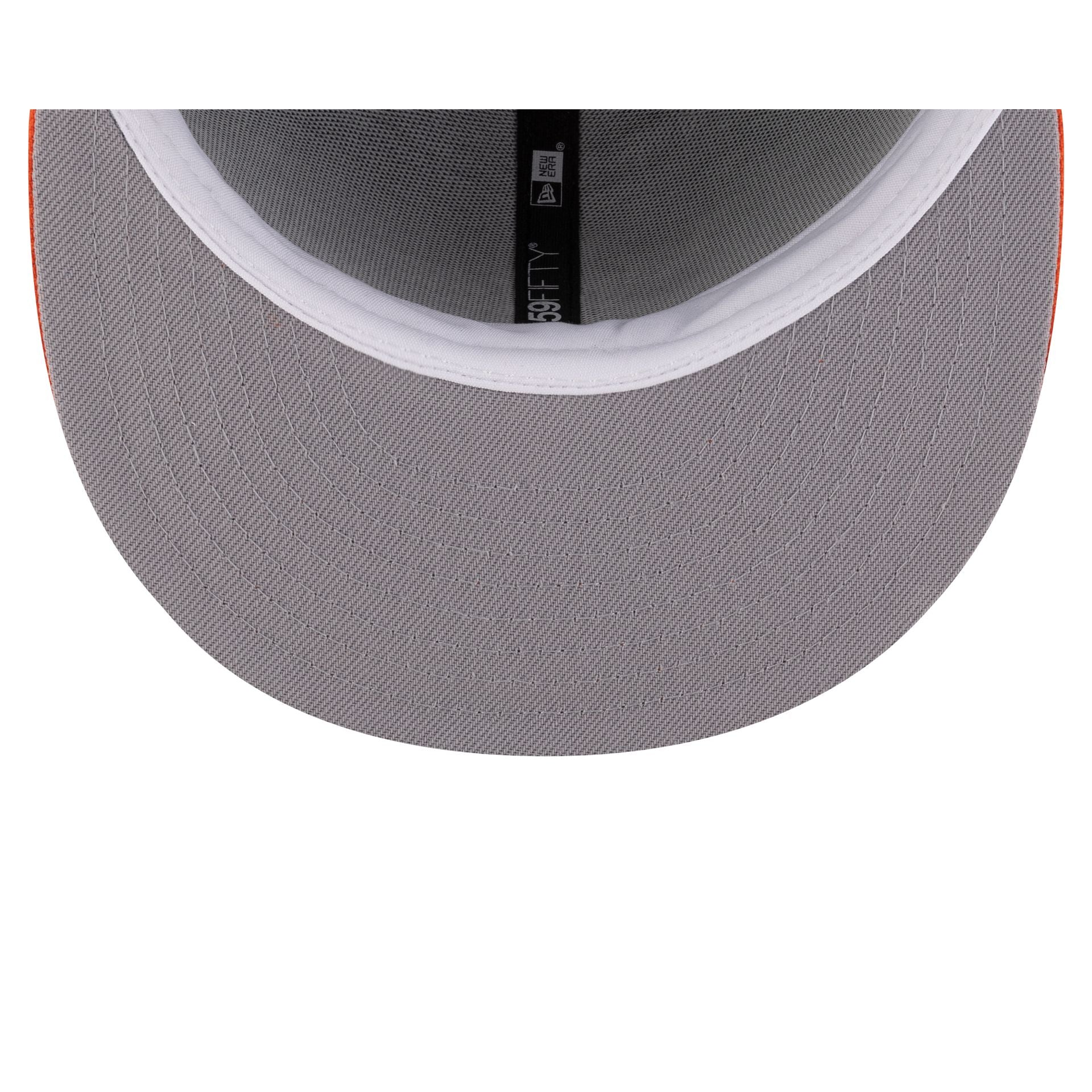 The Detroit Tigers Mascot Navy 59FIFTY Fitted Cap features an embroidered Tigers mascot at the front panels with a matching MLB Batterman logo at the rear. Additional details include a 100th Anniversary patch at the right-wear side and a gray undervisor.