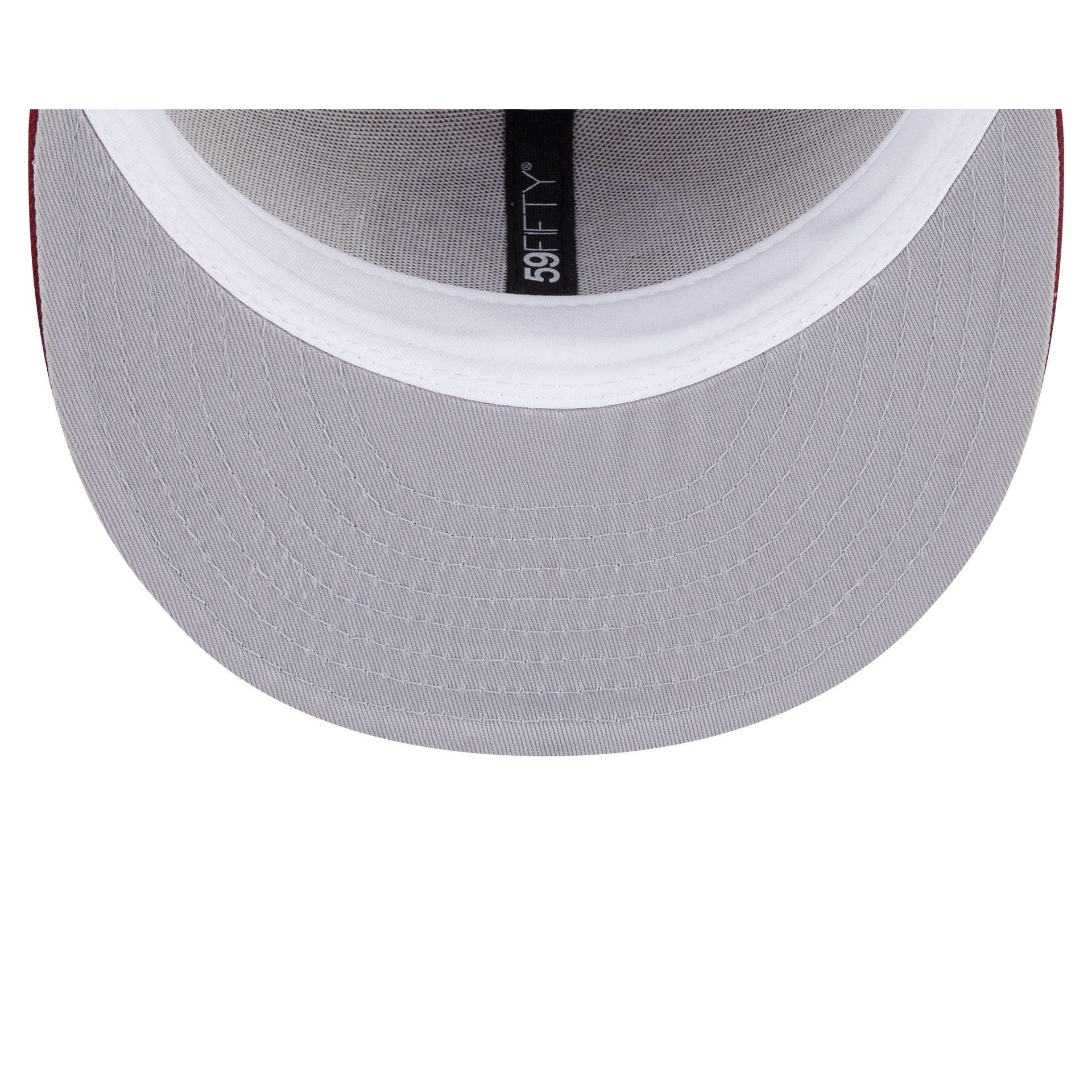 The Florida State Seminoles Camel College Vault 59FIFTY Fitted Cap features an embroidered Seminoles logo at the front panels with a matching team wordmark at the rear and a gray undervisor.