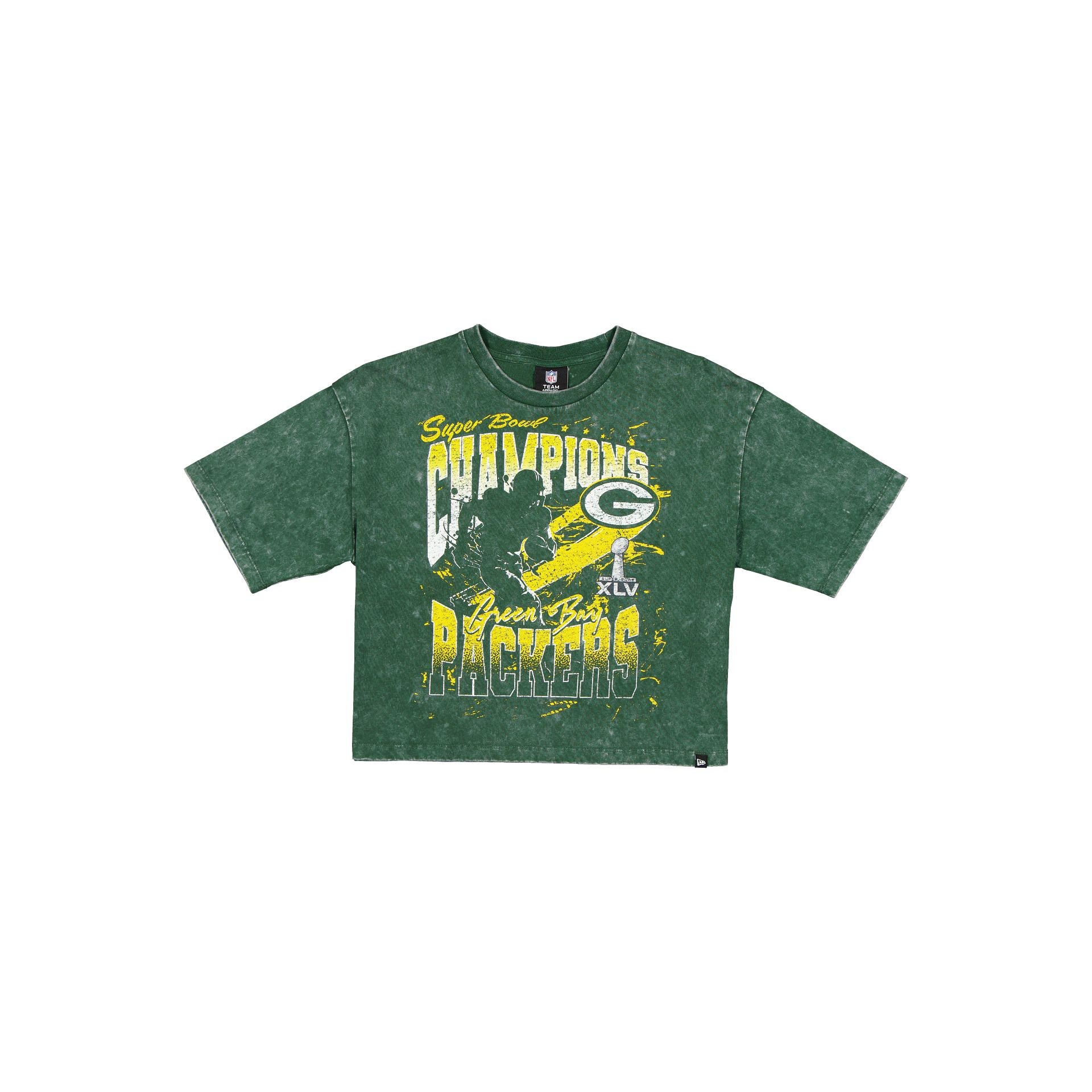 The Green Bay Packers Sport Classics Women’s Cropped T-Shirt features a screen-printed Packers graphic at the front.