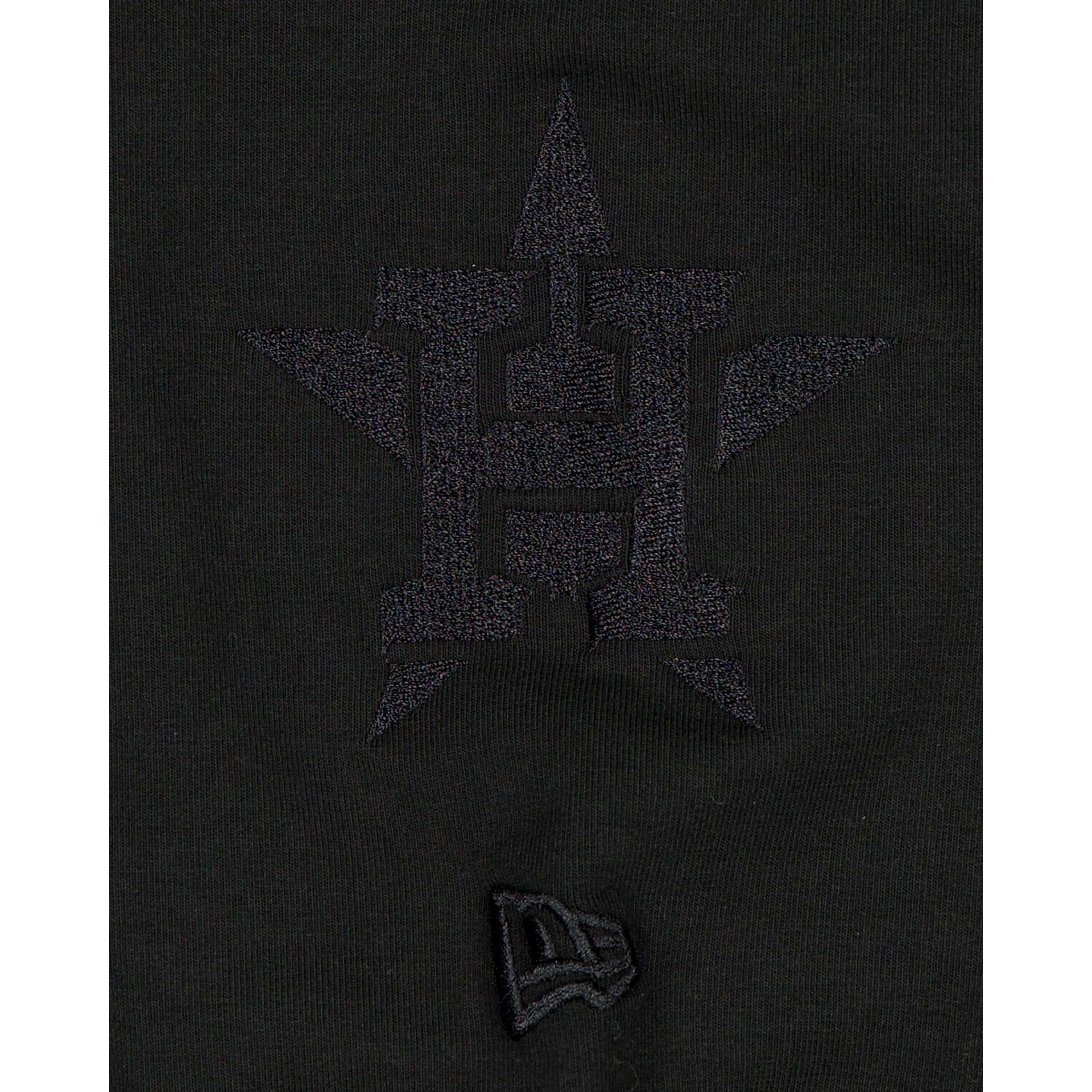 The Houston Astros Black on Black Logo Select Hoodie features a satin applique with a tonal stitch Astros wordmark at the chest and an embroidered team logo at the left-wear sleeve.