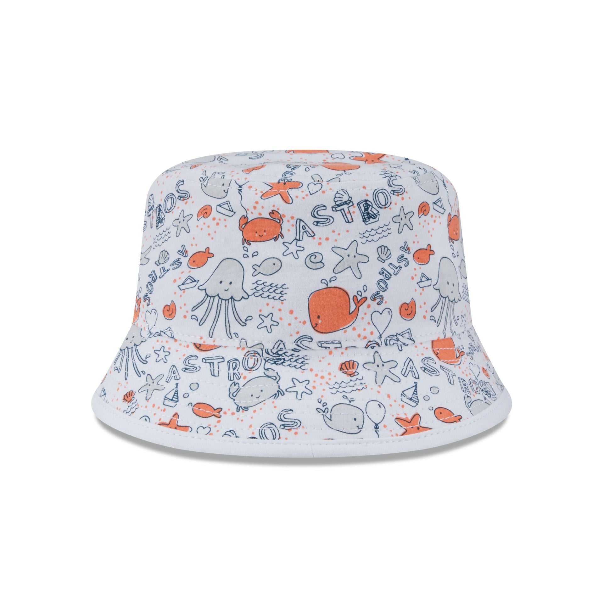 The Houston Astros Kids Ocean Bucket Hat features an embroidered Astros logo at the front with a nautical design throughout the hat.