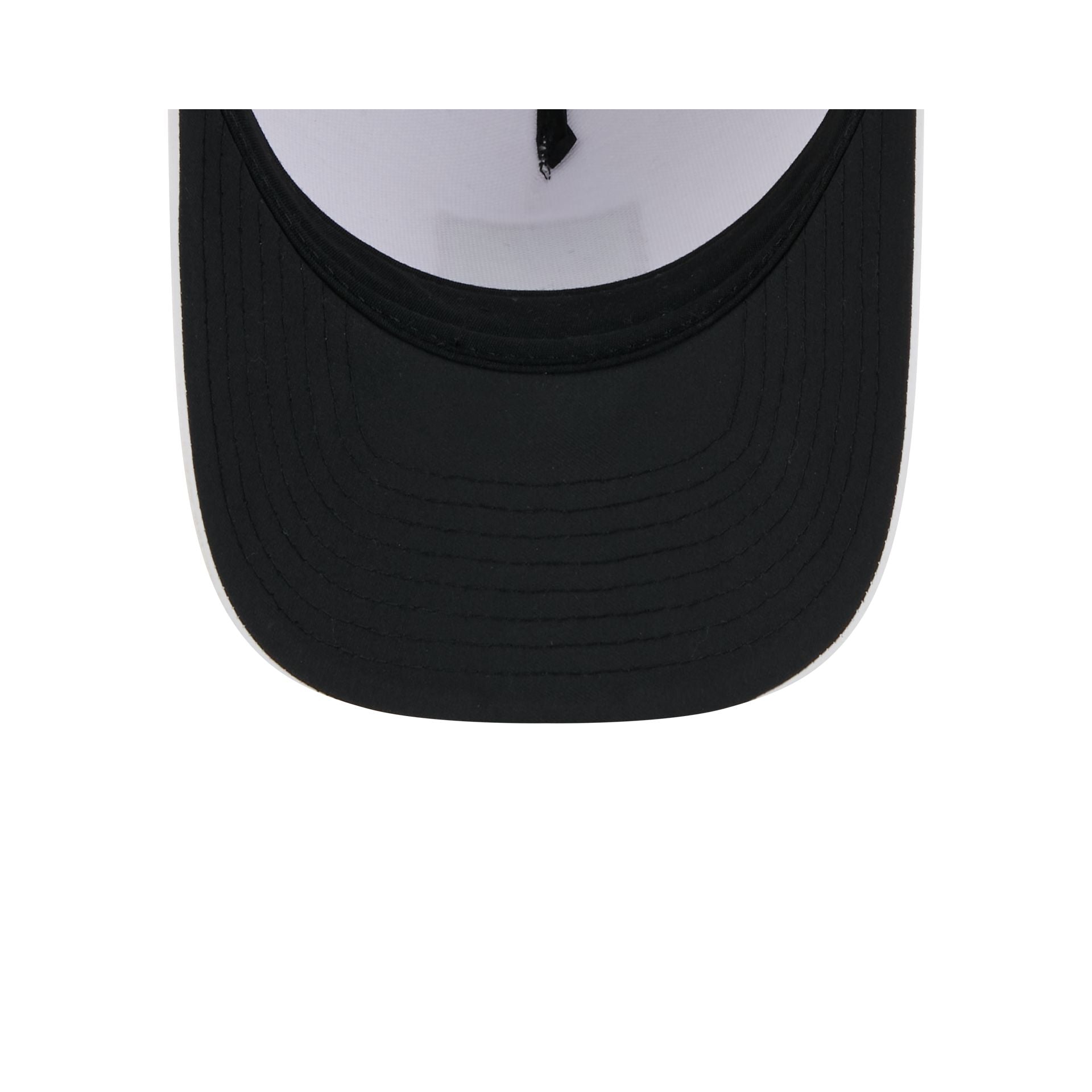 The LIV Golf Patch 9FORTY M-Crown A-Frame Snapback features an embroidered LIV Golf patch at the front panels with performance fabric throughout. Additional details include a LIV Golf tag on a snapback closure at the rear and a black undervisor.