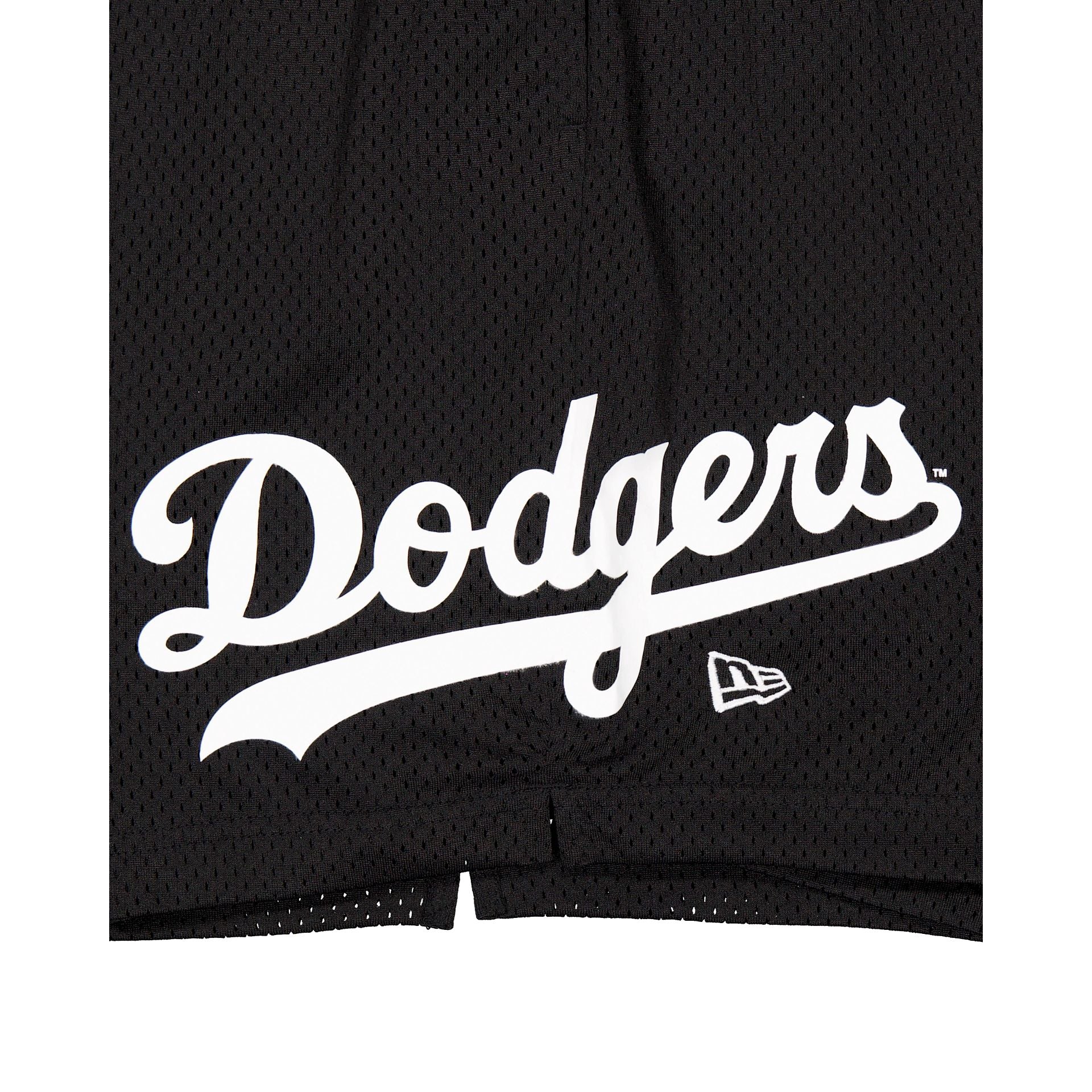 The Los Angeles Dodgers Mesh Shorts features a screen-printed Dodgers logo at the left leg with a team wordmark at the right leg.