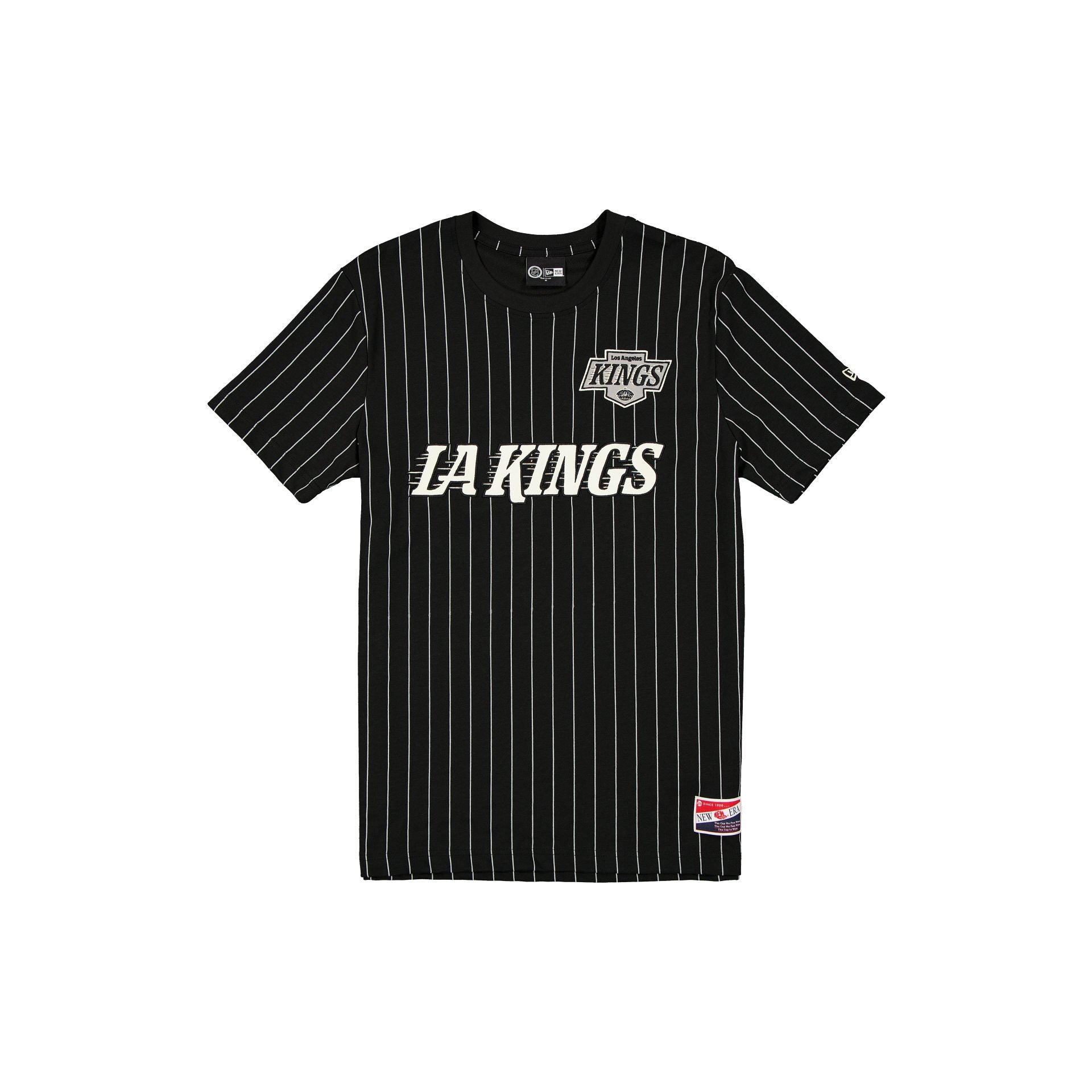 The Los Angeles Kings Throwback Retro Pinstripe T-Shirt features an embroidered Kings wordmark at the front with a twill applique logo at the left chest.