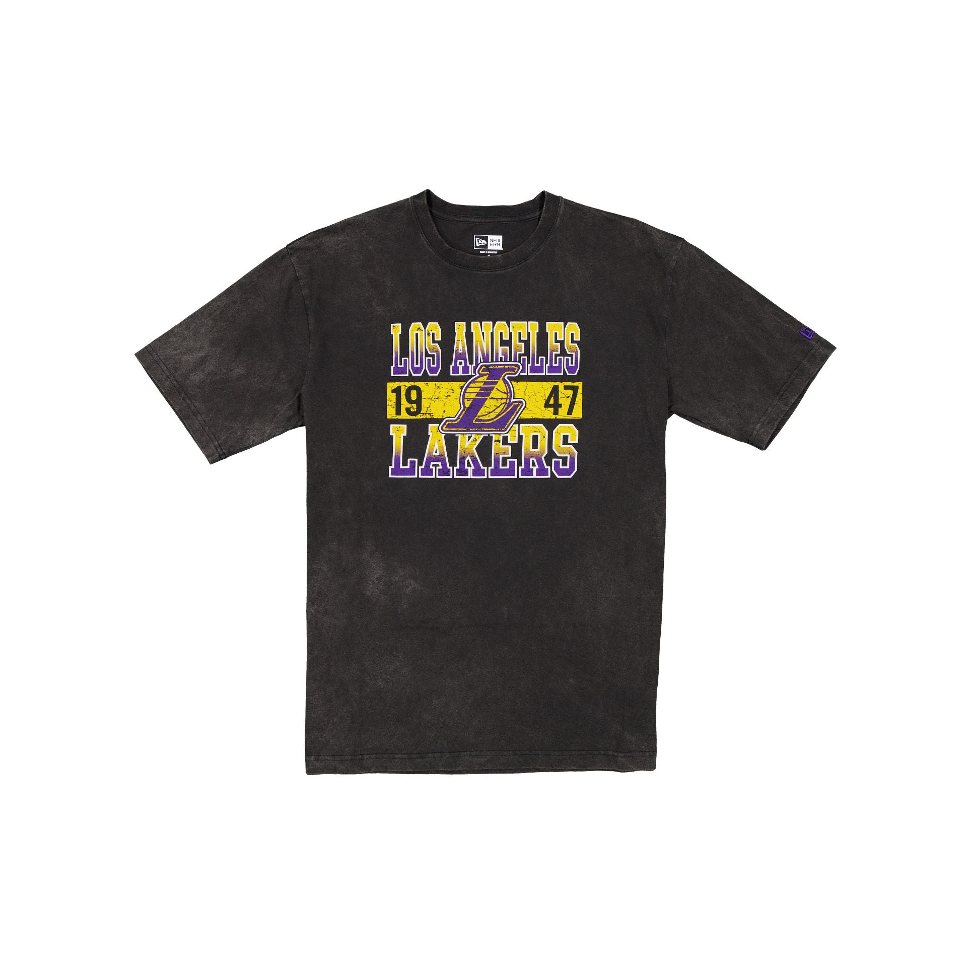 The Los Angeles Lakers Oversized Washed Black T-Shirt features a screen-printed Lakers graphic at the front with a washed fabrication.