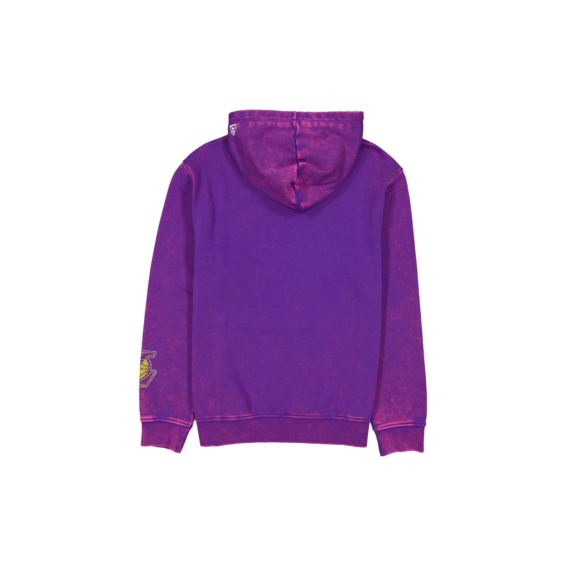 The Los Angeles Lakers Sport Classics Washed Hoodie features a screen-printed Lakers graphic at the front with kangaroo pockets and adjustable drawstrings at the hood.