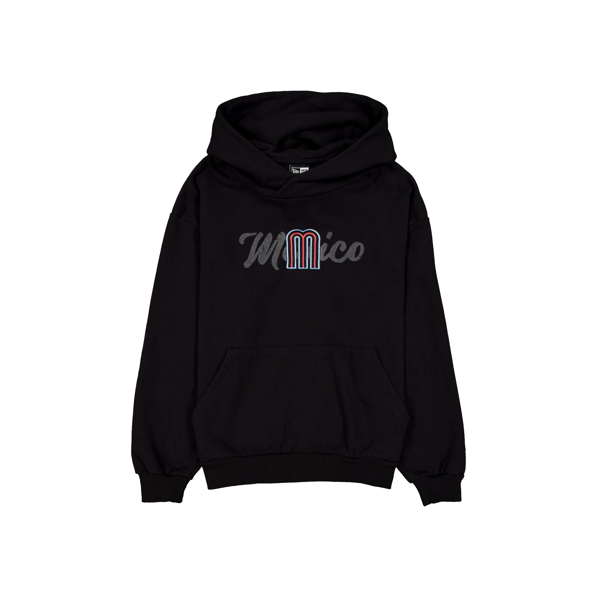 The Mexico Baseball Hoodie features an embroidered Mexico Baseball logo over a screen-printed monochromatic team wordmark at the chest and a matching team logo at the rear.
