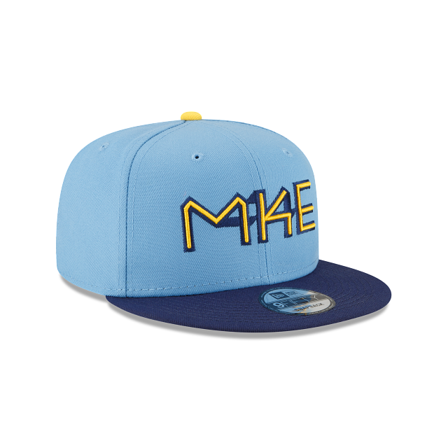Jersey inspired. city connected. The Milwaukee Brewers City Connect 9FIFTY Snapback draws originality from unique elements tied to the surrounding city and features an embroidered Brewers logo at the front panels. and a snapback closure at the rear.