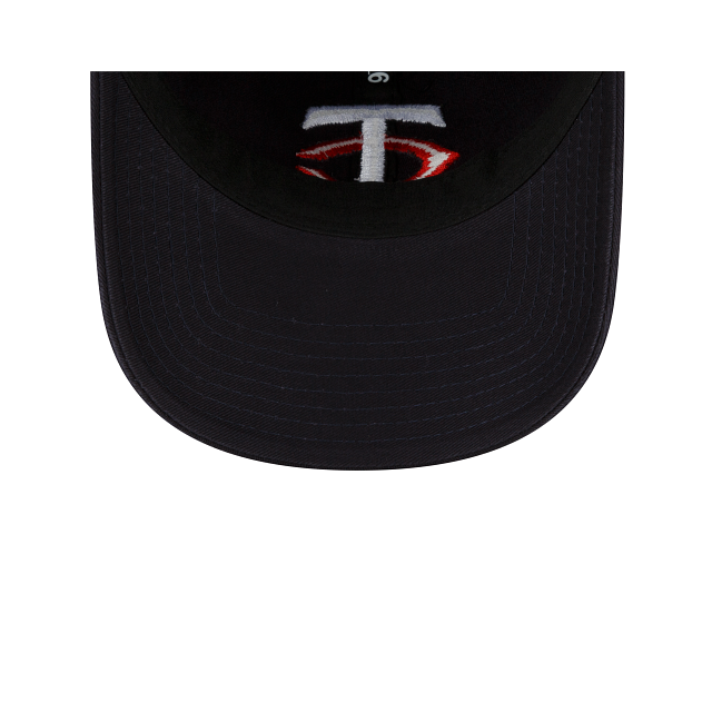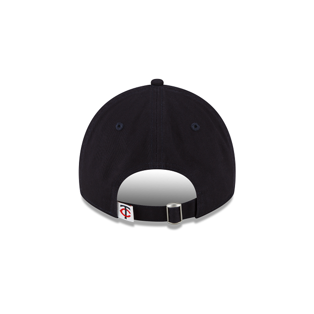 The Minnesota Twins Core Classic Home 9TWENTY Adjustable Cap features an embroidered Twins logo at the front panels with a woven tab displaying the team logo on an adjustable D-Ring closure at the rear.
