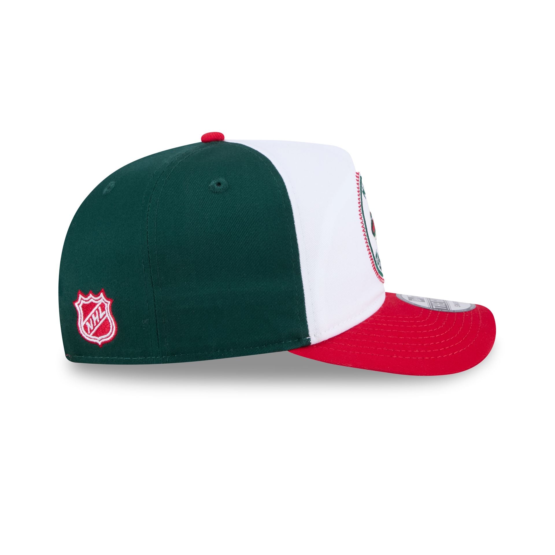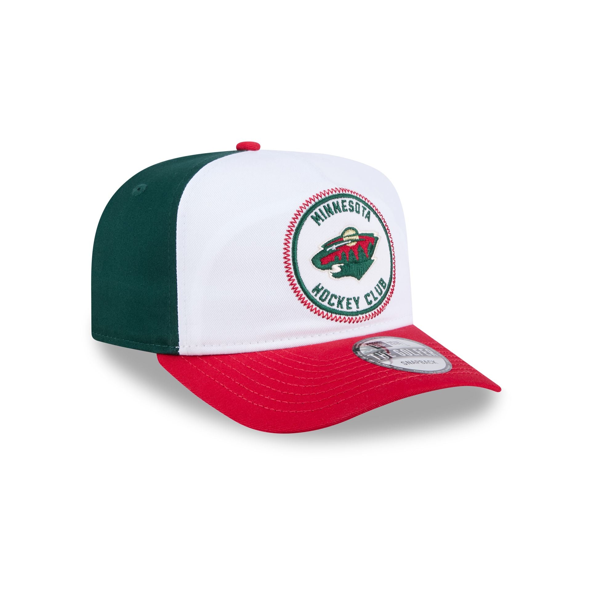 The Minnesota Wild NHL Pack Golfer features a Wild Hockey Club patch at the front panel with a matching NHL Shield at the right of a snapback closure at the rear and a gray undervisor.