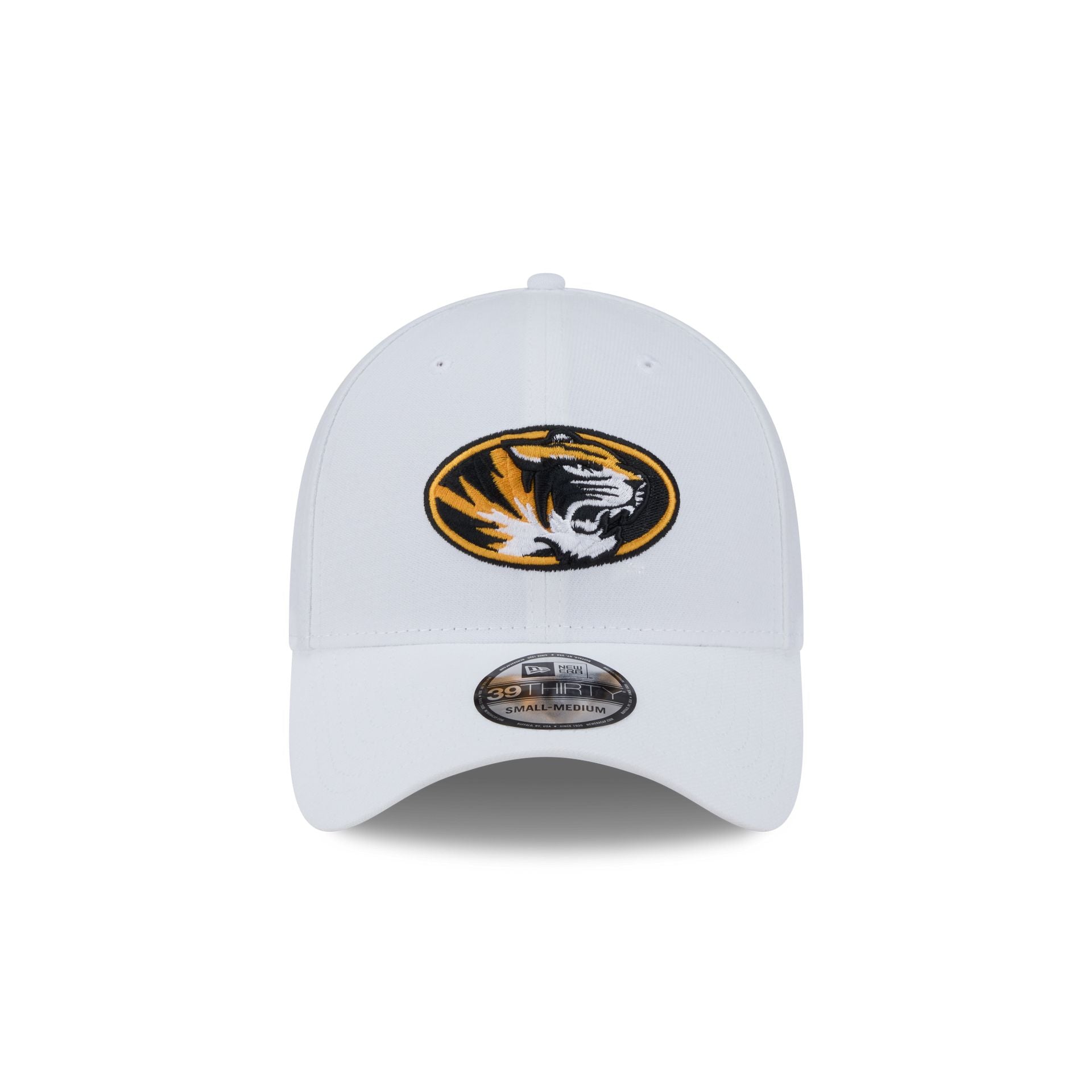 The Missouri Tigers Optic White 39THIRTY Stretch Fit features an embroidered Tigers logo at the front panels with a team wordmark at the rear.