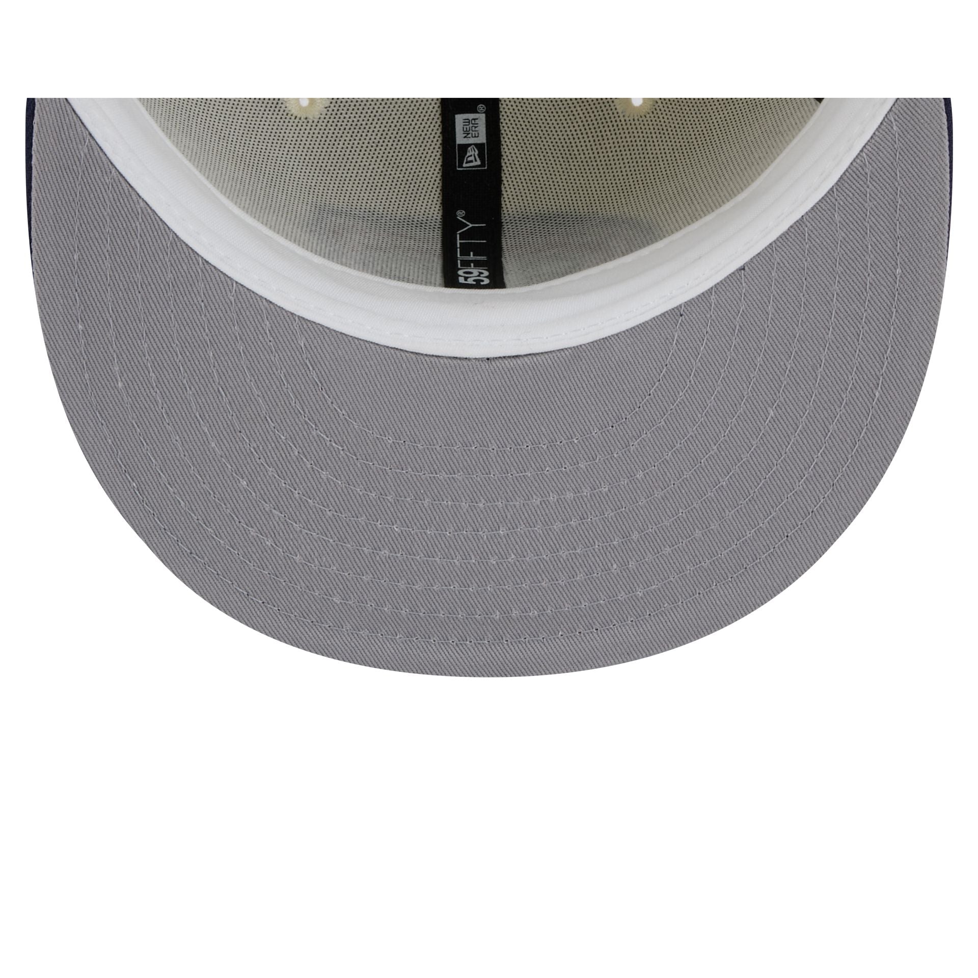 The Montreal Canadiens Chrome White 59FIFTY Fitted Cap features an embroidered Canadiens logo at the front panels with a matching NHL Shield at the rear and a gray undervisor.