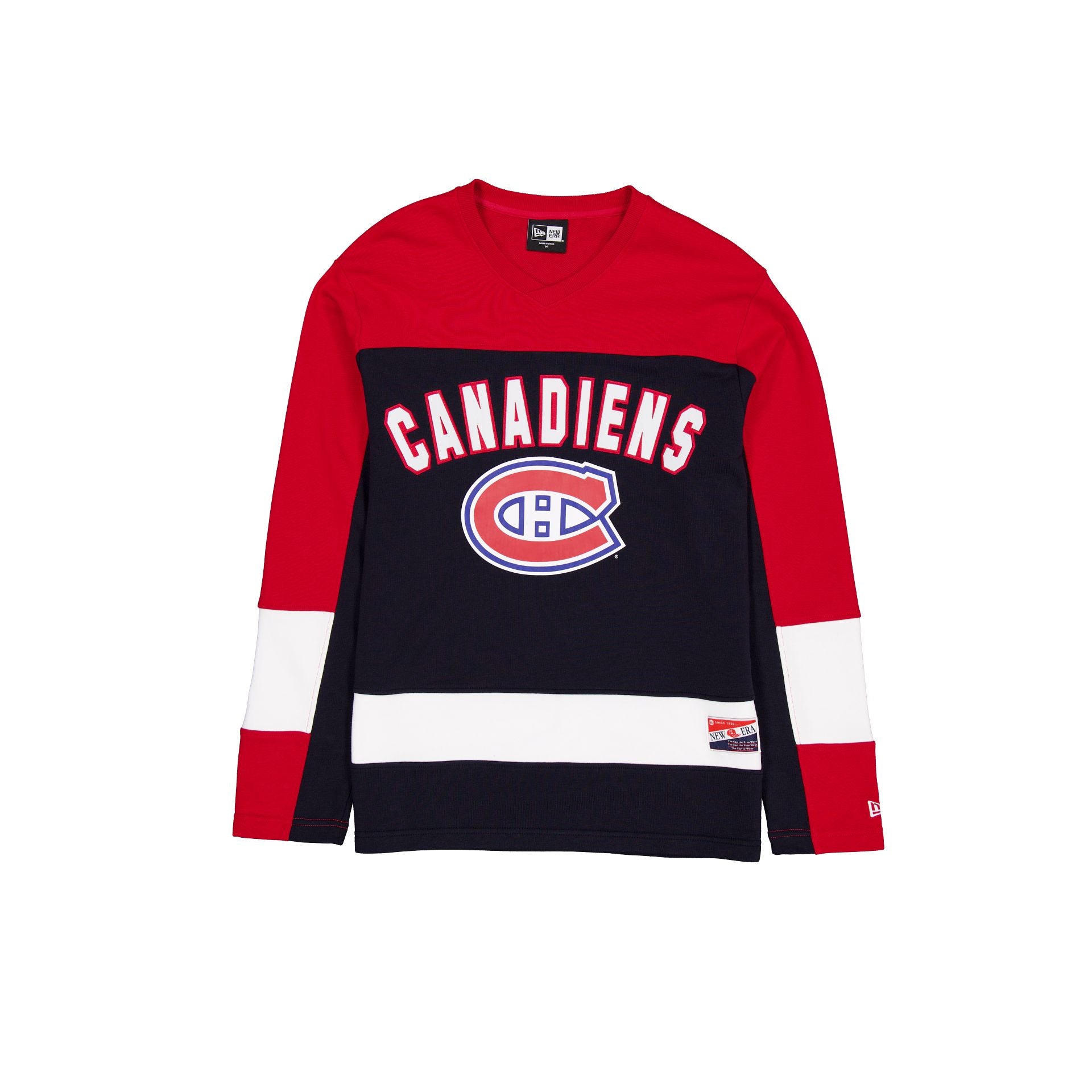 The Montreal Canadiens Throwback Long Sleeve T-Shirt features a twill applique Canadiens wordmark above a screen-printed team logo at the front.