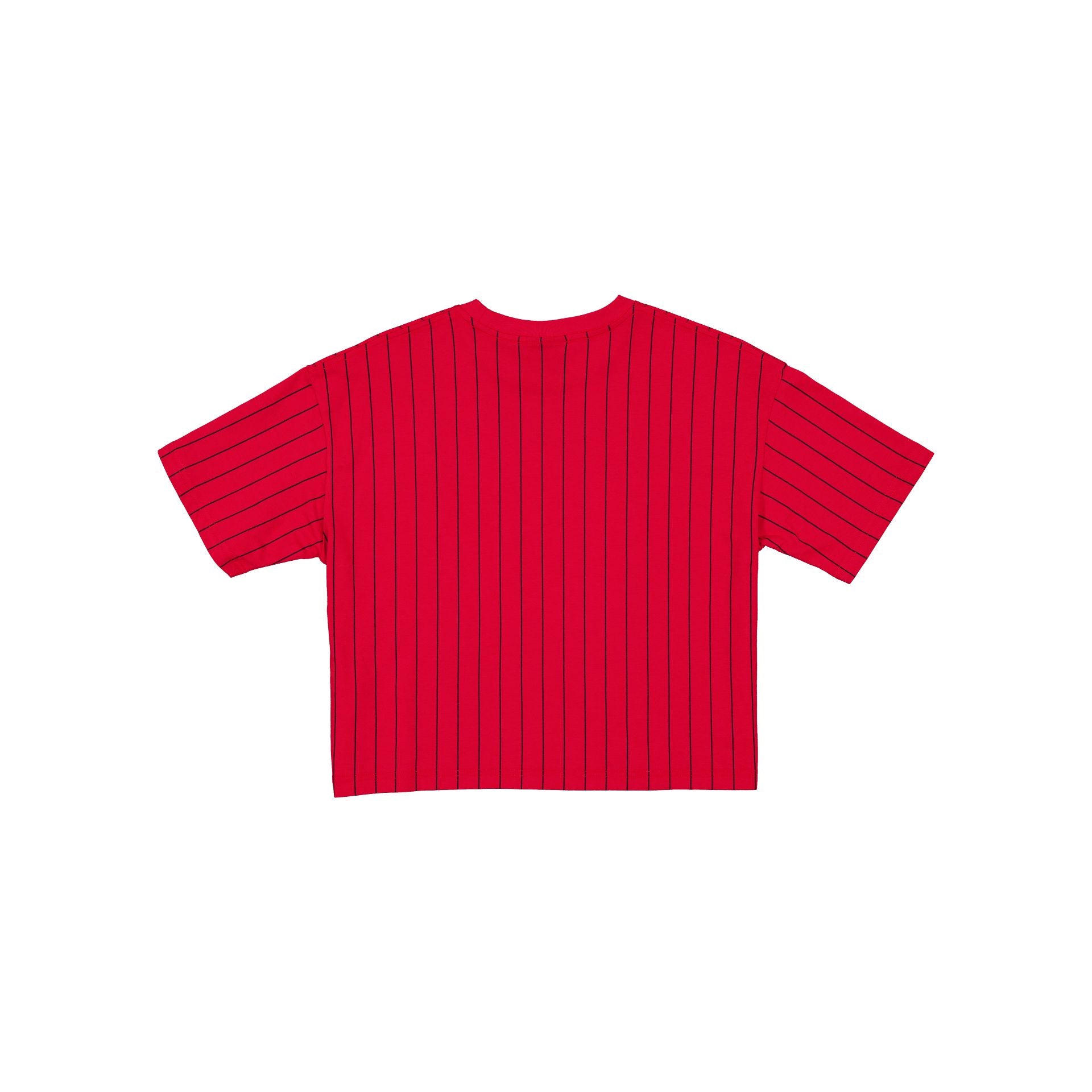The Montreal Canadiens Throwback Women’s Pinstripe T-Shirt features a screen-printed Canadiens wordmark and logo at the front with a New Era jock tag at the left hip.