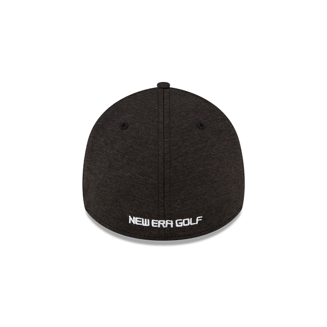 The New Era Golf Black 39THIRTY Stretch Fit Cap features an embroidered New Era Golf logo at the front panels with a corresponding wordmark at the rear and a gray undervisor.