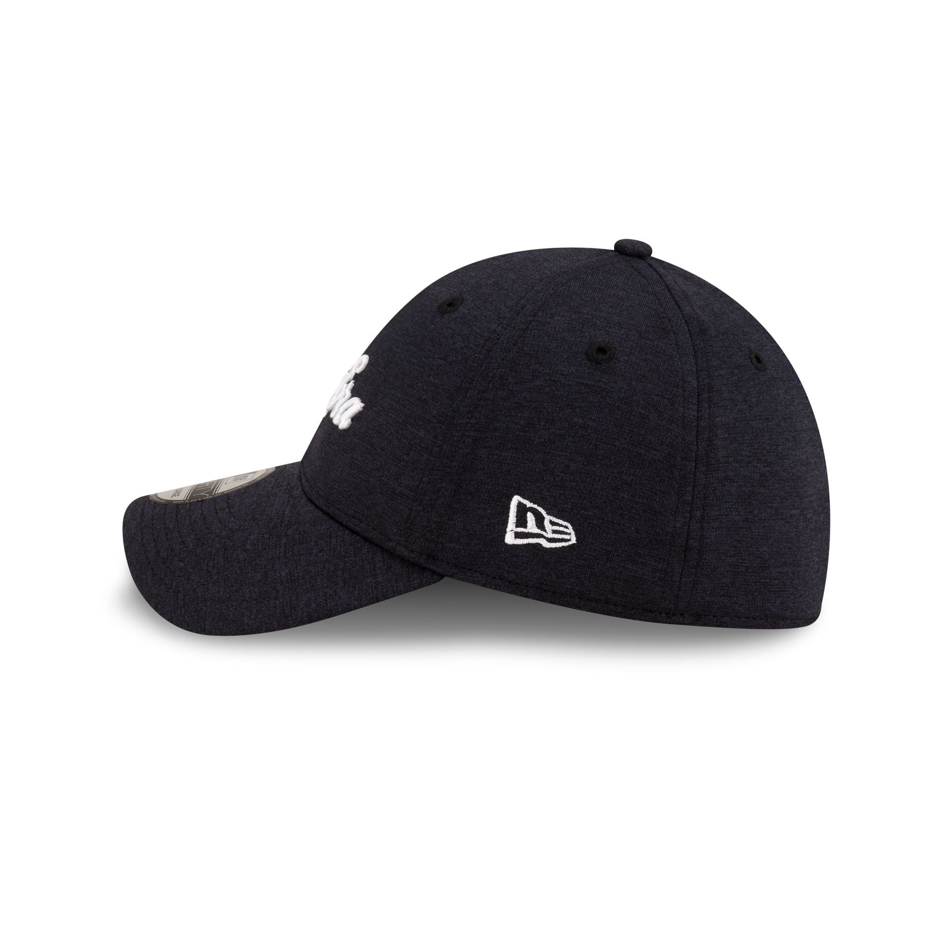 The New Era Golf Script Navy 39THIRTY Stretch Fit Cap features an embroidered New Era Golf wordmark at the front panels with a New Era Golf logo at the rear and a gray undervisor.