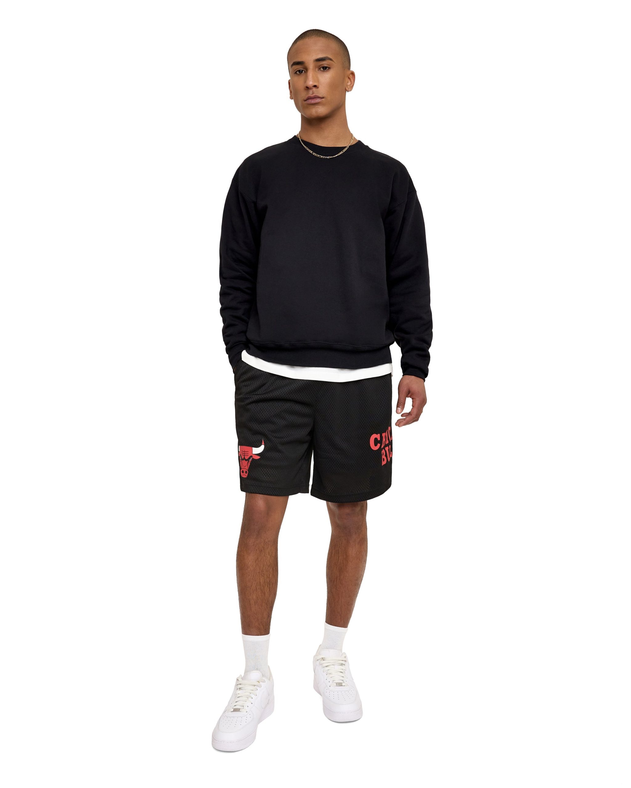 The New York Knicks Mesh Shorts features a screen-printed Knicks logo at the left leg with a team wordmark at the right leg.