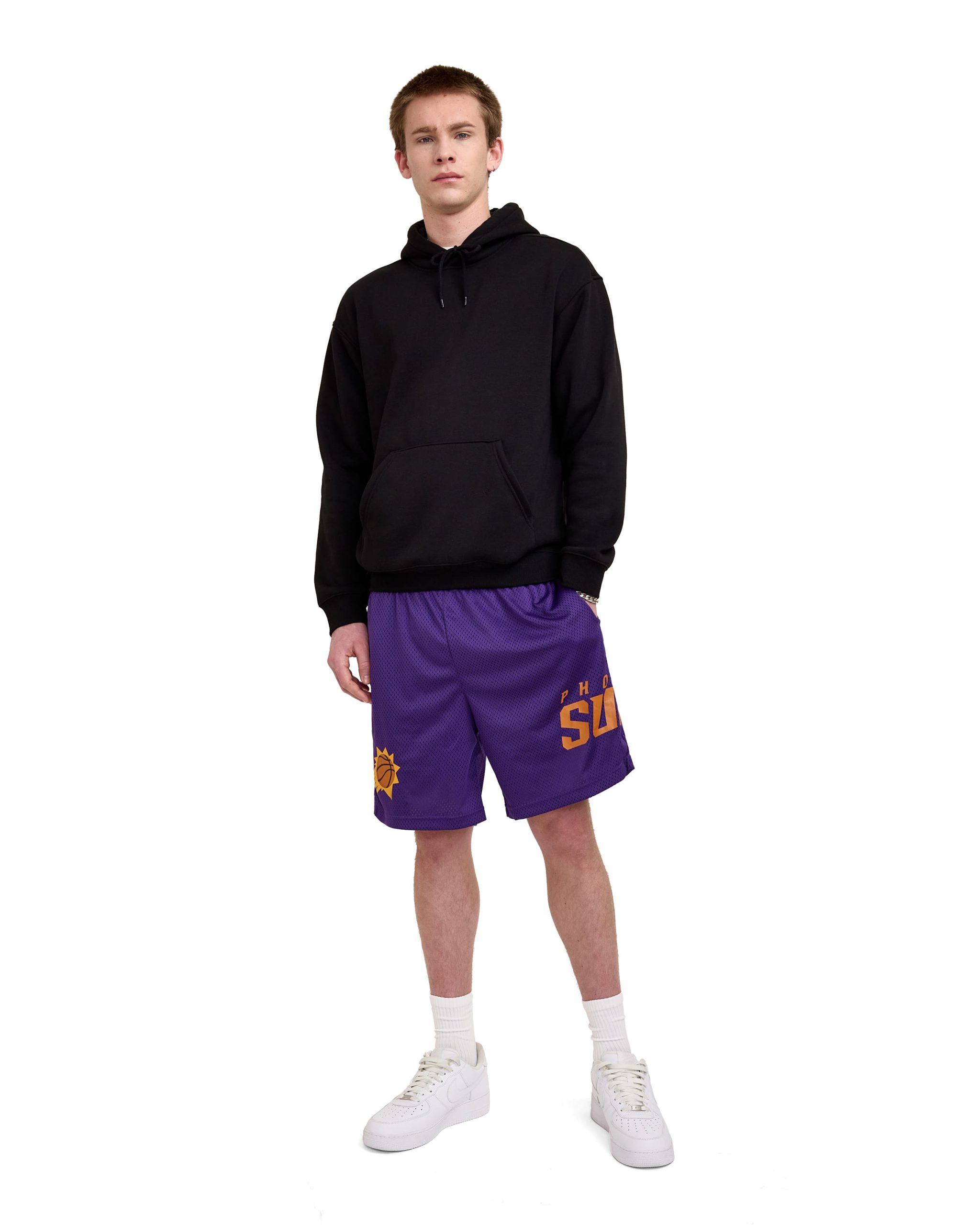 The New York Knicks Summer Shorts feature a screen-printed Knicks logo at the right leg and team wordmark on the left.