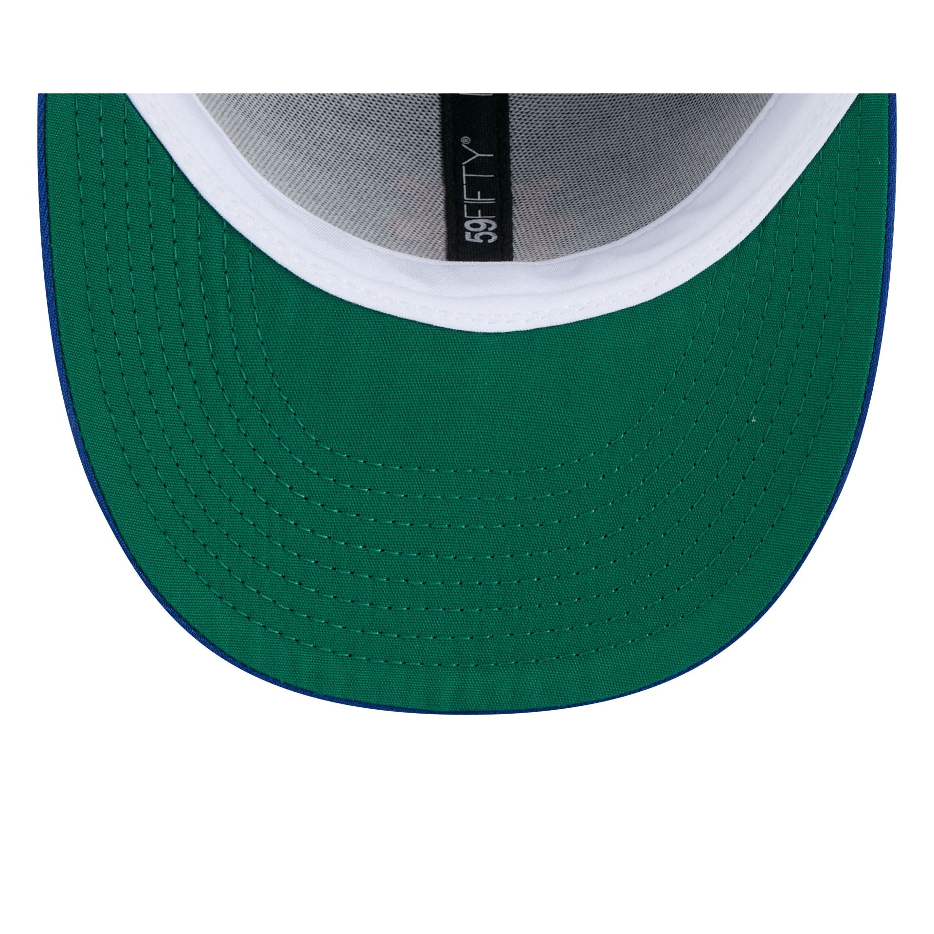 The New York Mets Hall of Fame 2025 Low Profile 59FIFTY Fitted Cap features an embroidered Mets Cooperstown logo at the front panels with a matching MLB Batterman logo at the rear. a National Baseball Hall of Fame patch at the right-wear side. and a green undervisor.