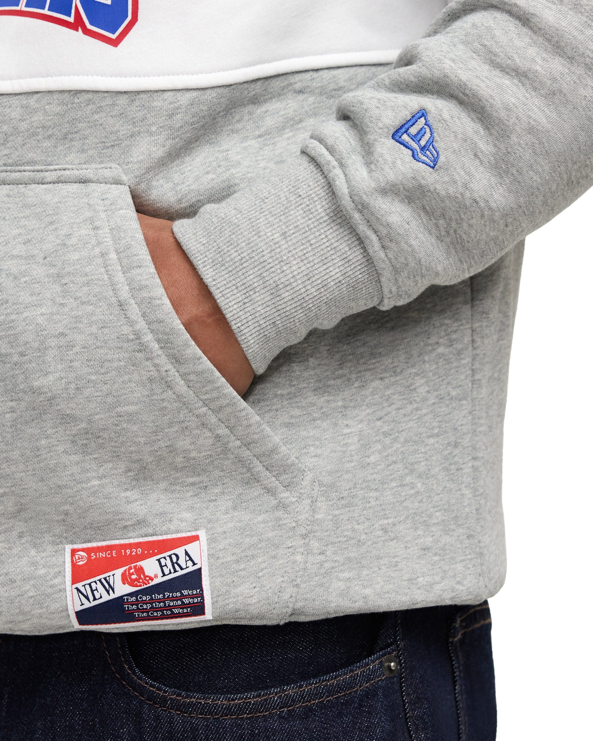 The New York Rangers Throwback Color Block Hoodie features a screen-printed Rangers logo and team wordmark at the front with a quarter zip closure at the collar.