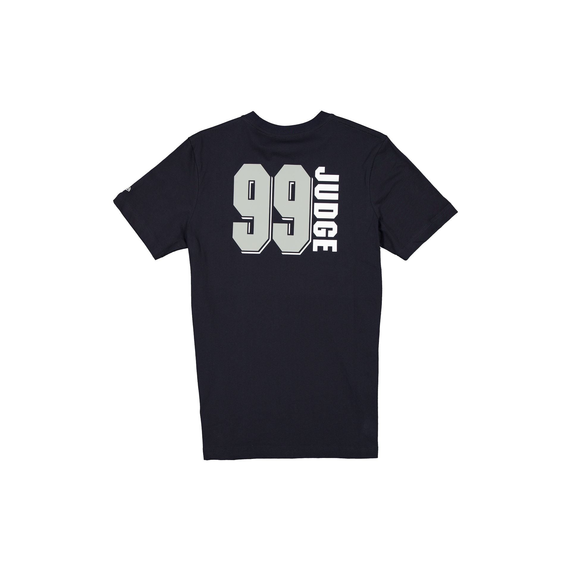 The New York Yankees Name & Number Aaron Judge T-Shirt features a screen-printed Yankees graphic at the front with the player’s name and number at the rear.