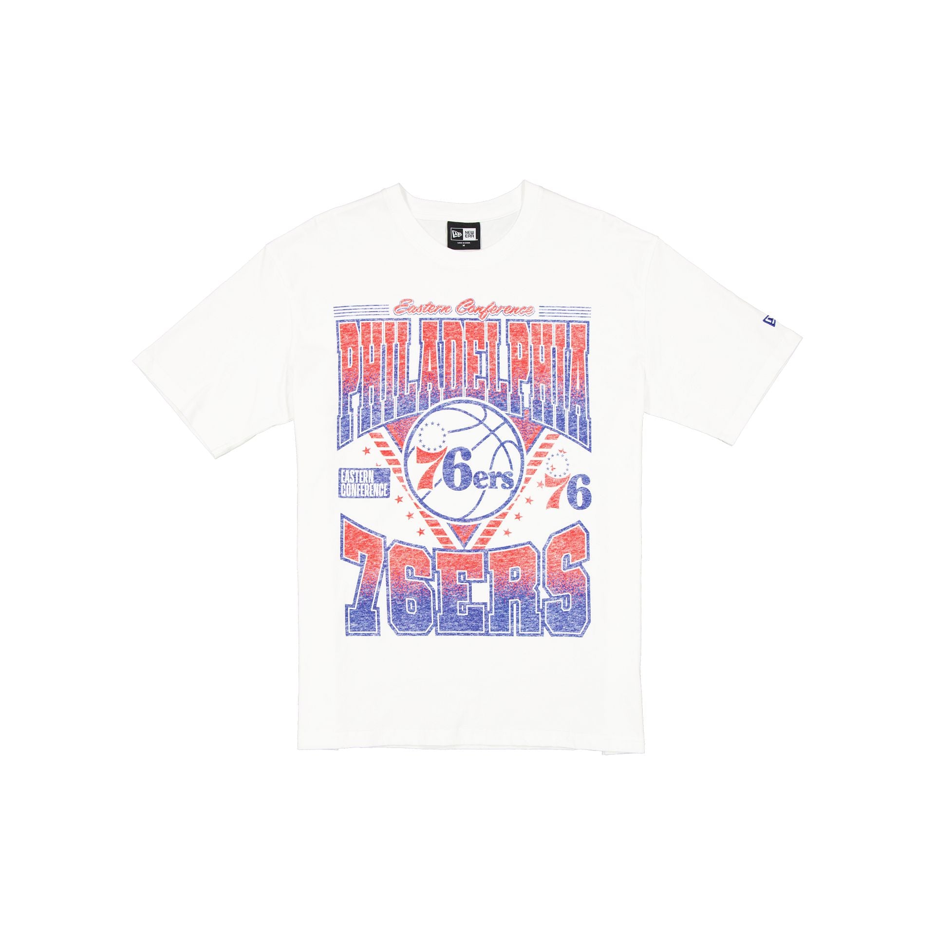 The Philadelphia 76ers Sport Classics Washed Optic White T-Shirt features a screen-printed 76ers graphic at the front.