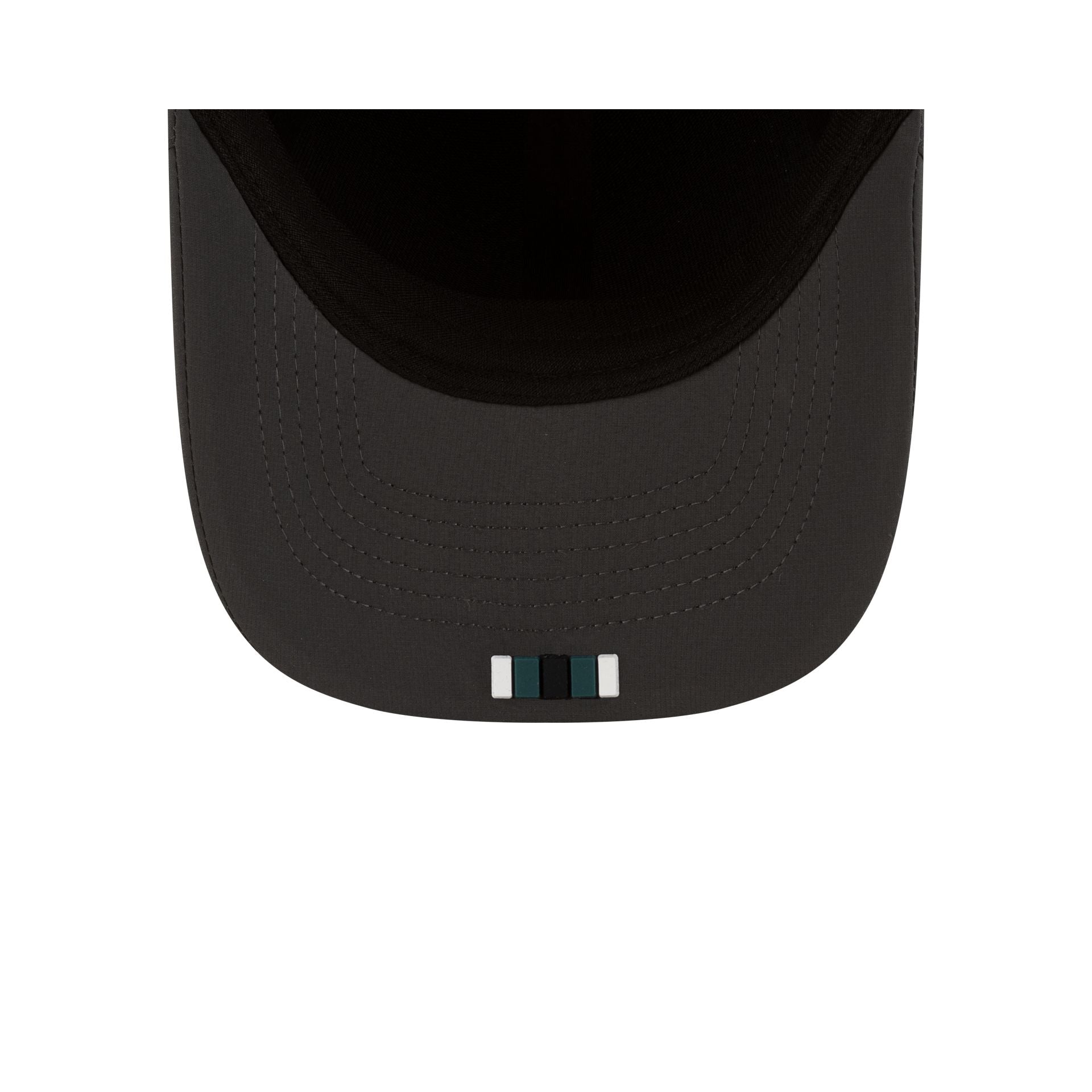 The Philadelphia Eagles Sideline Cold Weather Steel Clouds Kids 9FORTY M-Crown Snapback features a sewn-down silicone Eagles logo patch at the front panels with a water-repellent quill tech fabrication throughout and a quick-dry cushioned sweatband to absorb moisture. Additional details include the Official NFL Shield logo to the right of a soft silicone snapback closure at the rear. The crown has bonded seams to trap warmth and the undervisor is accented with a silicone transfer in the team’s colors.
