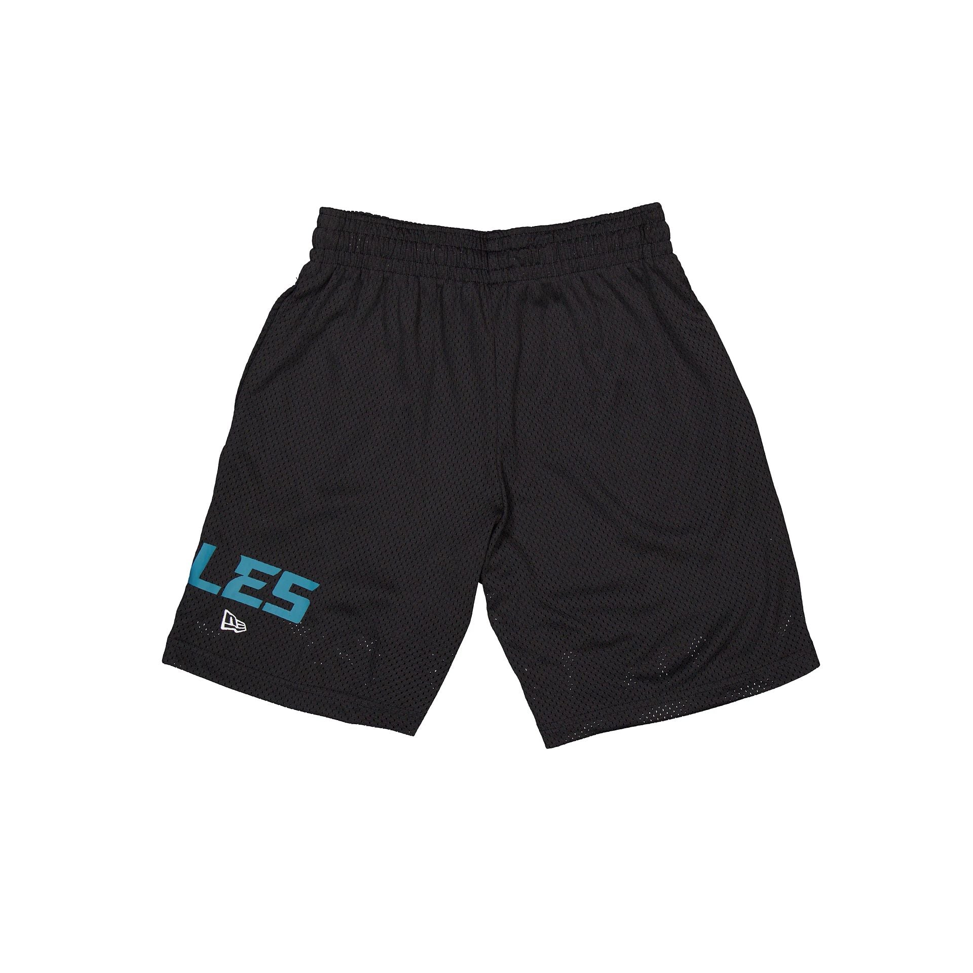 The Philadelphia Eagles Mesh Shorts features a screen-printed Eagles logo at the left leg with a team wordmark at the right leg.