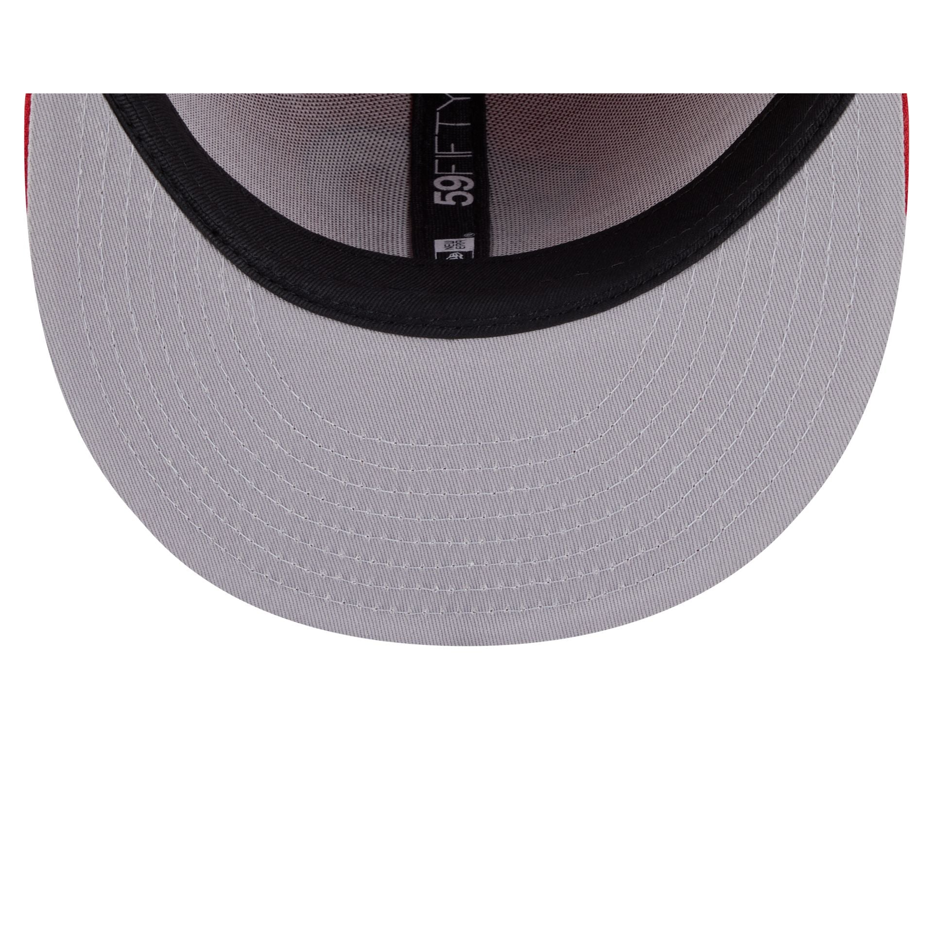 The Philadelphia Phillies Deceptor 59FIFTY Fitted Cap features an embroidered Phillies deceptive logo at the front panels with a team logo at the right-wear side. Additional details include a wordmark at the rear. and a gray undervisor.