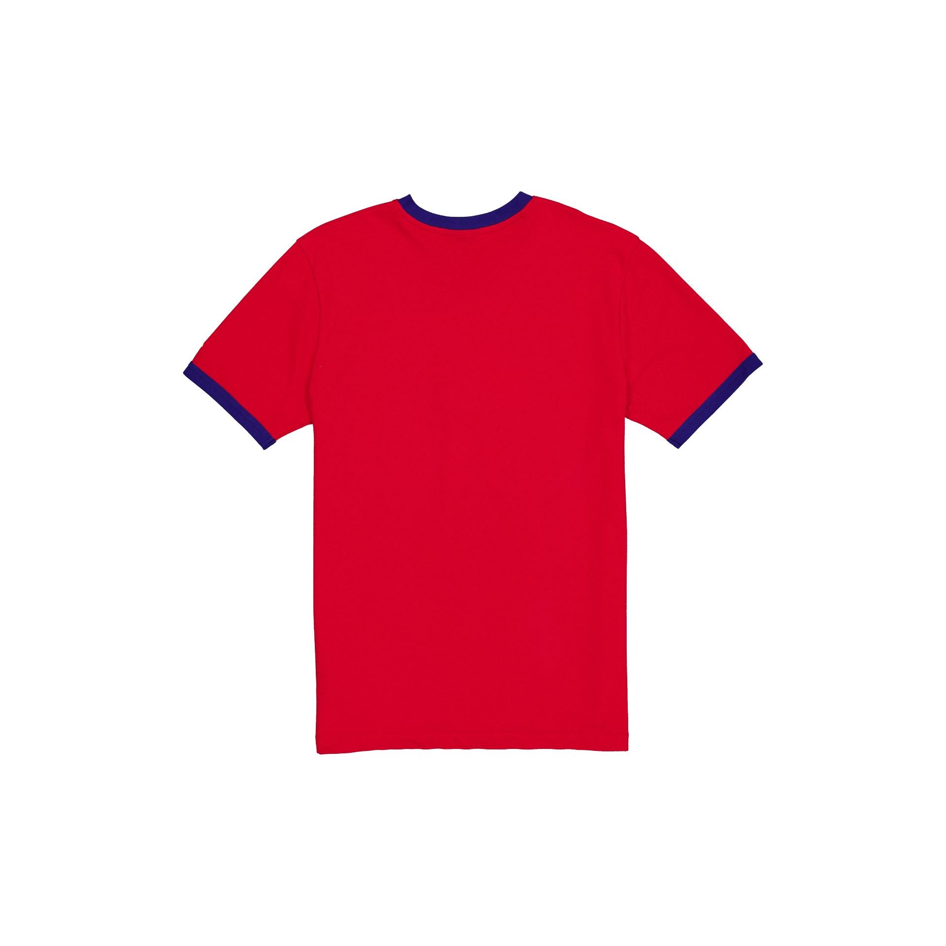 The Philadelphia Phillies Throwback Team T-Shirt features a screen-printed Phillies wordmark and embroidered team logo at the front with a New Era jock tag at the left hip. This t-shirt has a v-neckline.