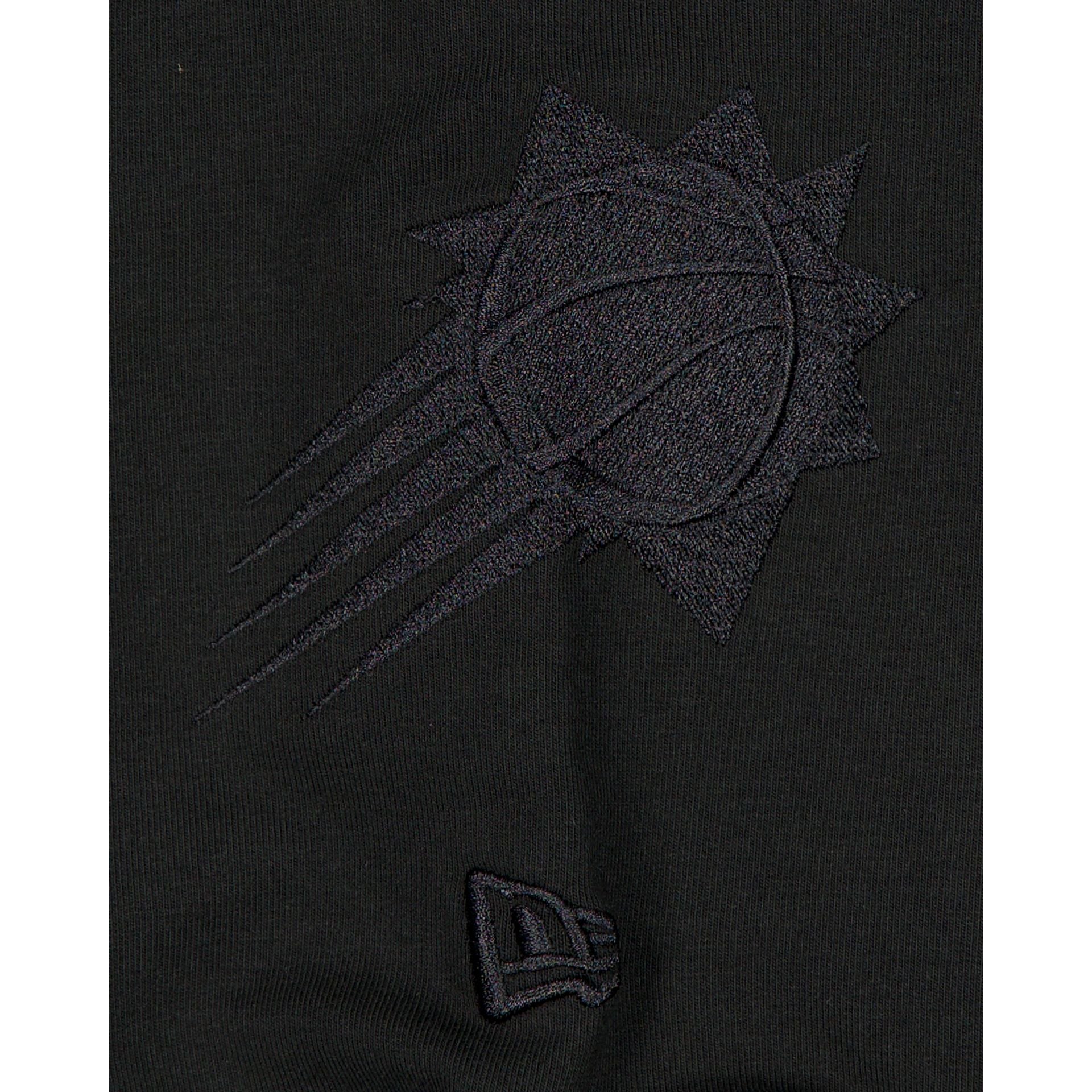The Phoenix Suns Black on Black Logo Select Hoodie features a satin applique with a tonal stitch Suns wordmark at the chest and an embroidered team logo at the left-wear sleeve.