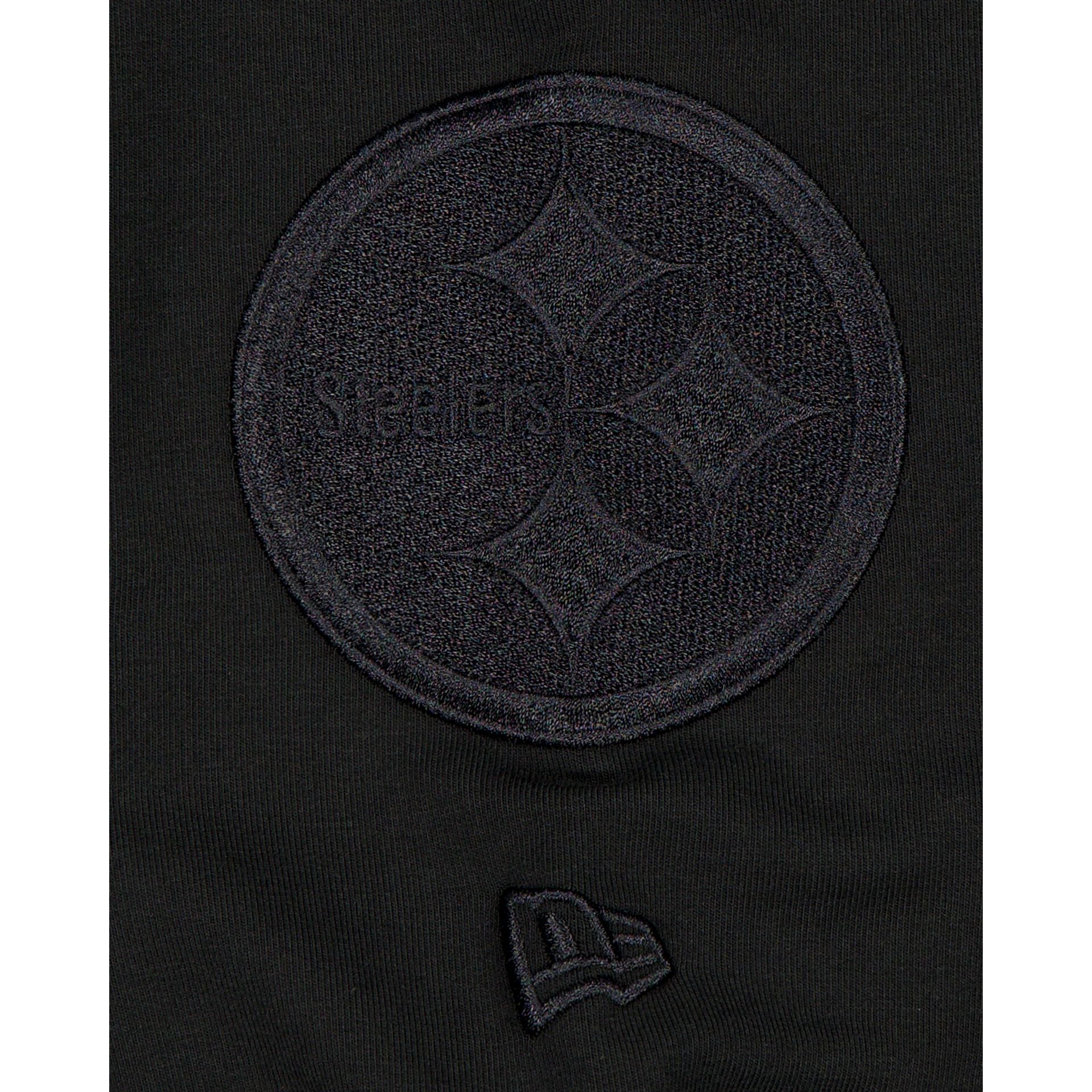 The Pittsburgh Steelers Black on Black Logo Select Hoodie features a satin applique with a tonal stitch Steelers wordmark at the chest and an embroidered team logo at the left-wear sleeve.