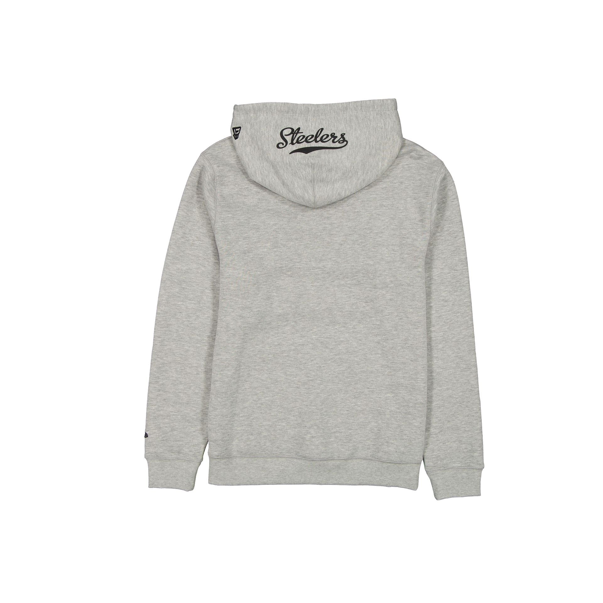 The Pittsburgh Steelers Game Day Hoodie features a screen-printed Steelers logo at the front with a wordmark at the hood. Additional details include kangaroo pockets and adjustable drawstrings at the hood.